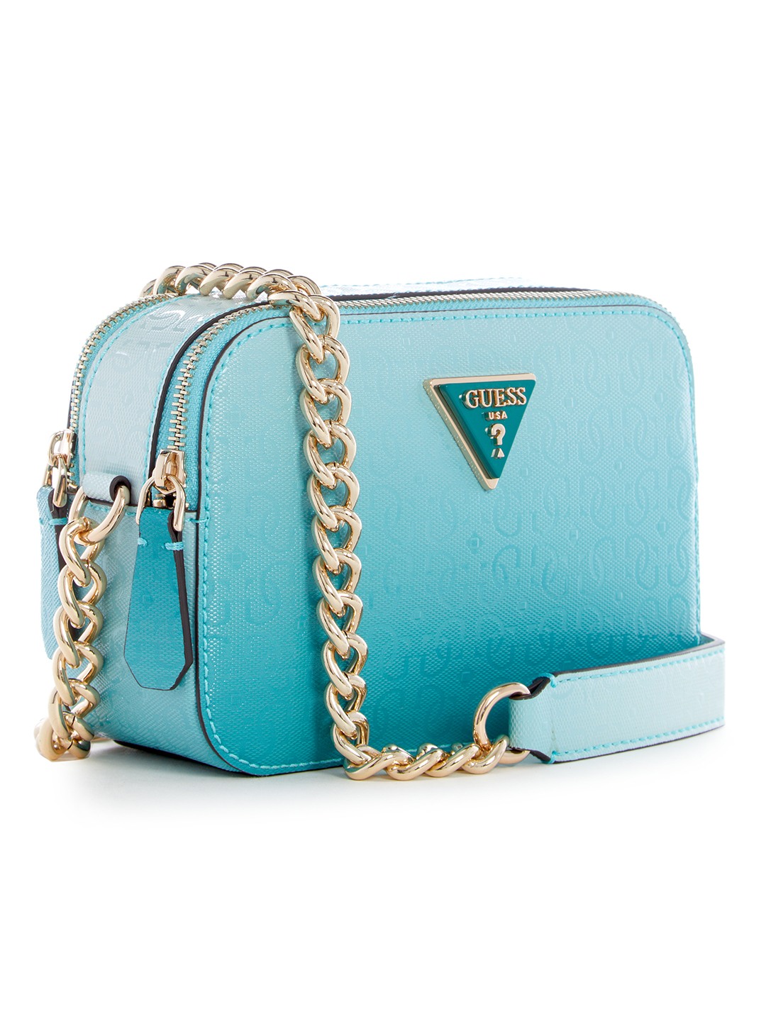 Guess Polyurethane Blue Solid Women Noelle Crossbody Camera Bag