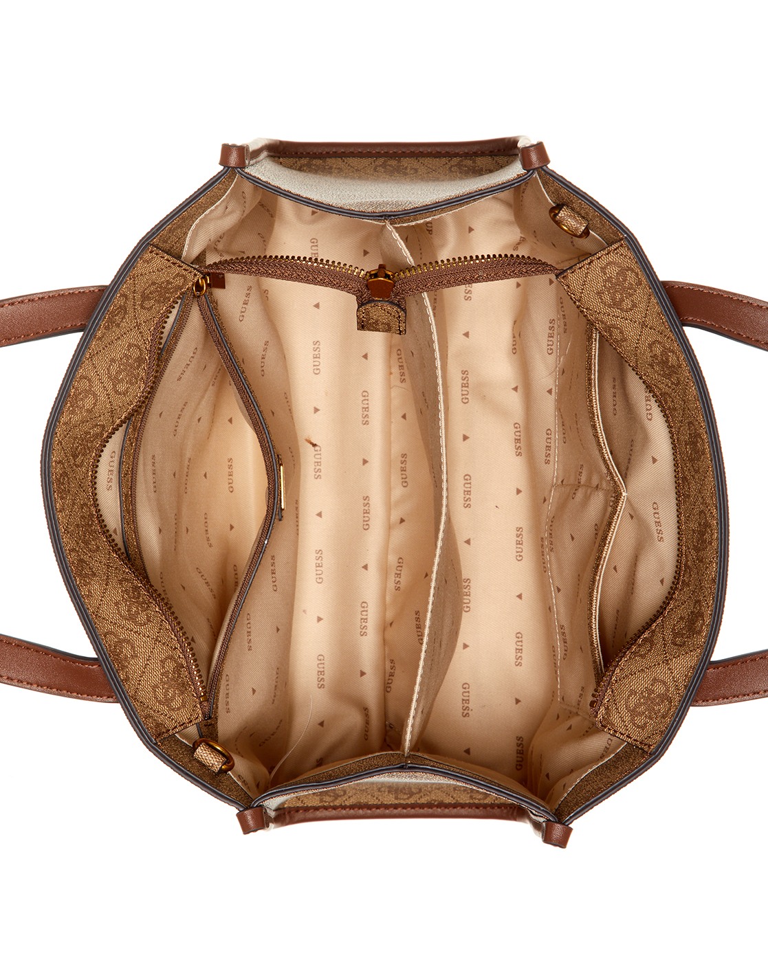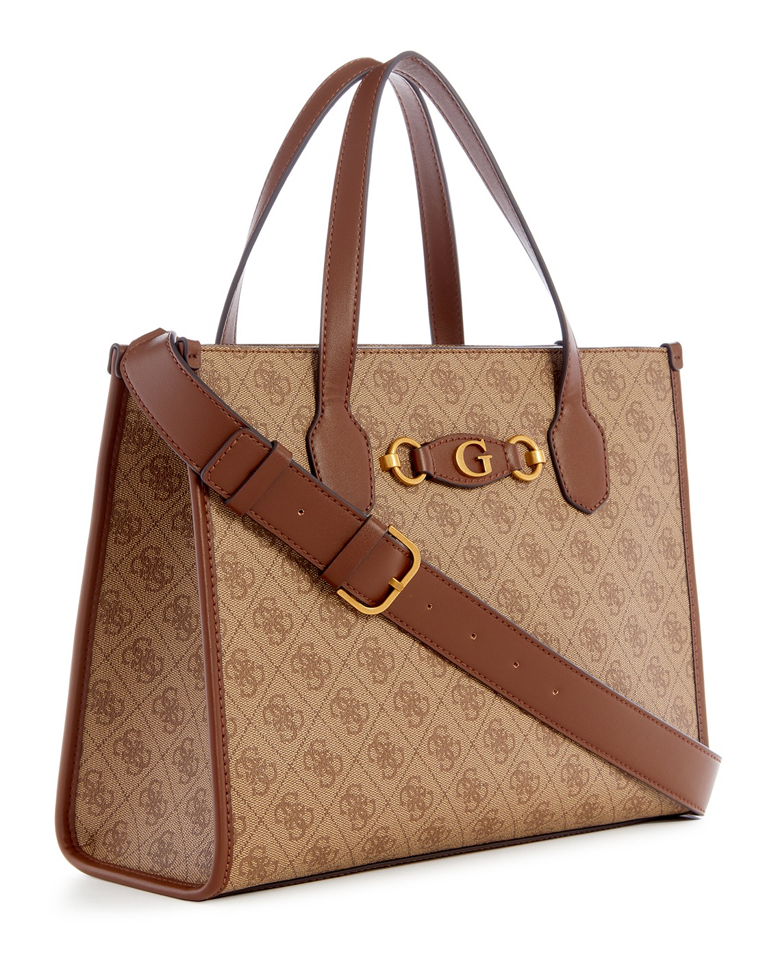 Guess Polyurethane Brown Printed Women Izzy Tote Bag