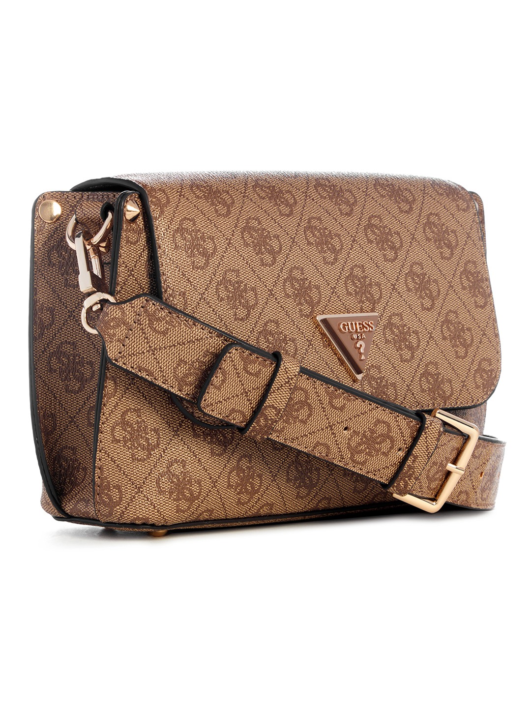 Guess Polyurethane Brown Printed Women Meridian Flap Shoulder Bag