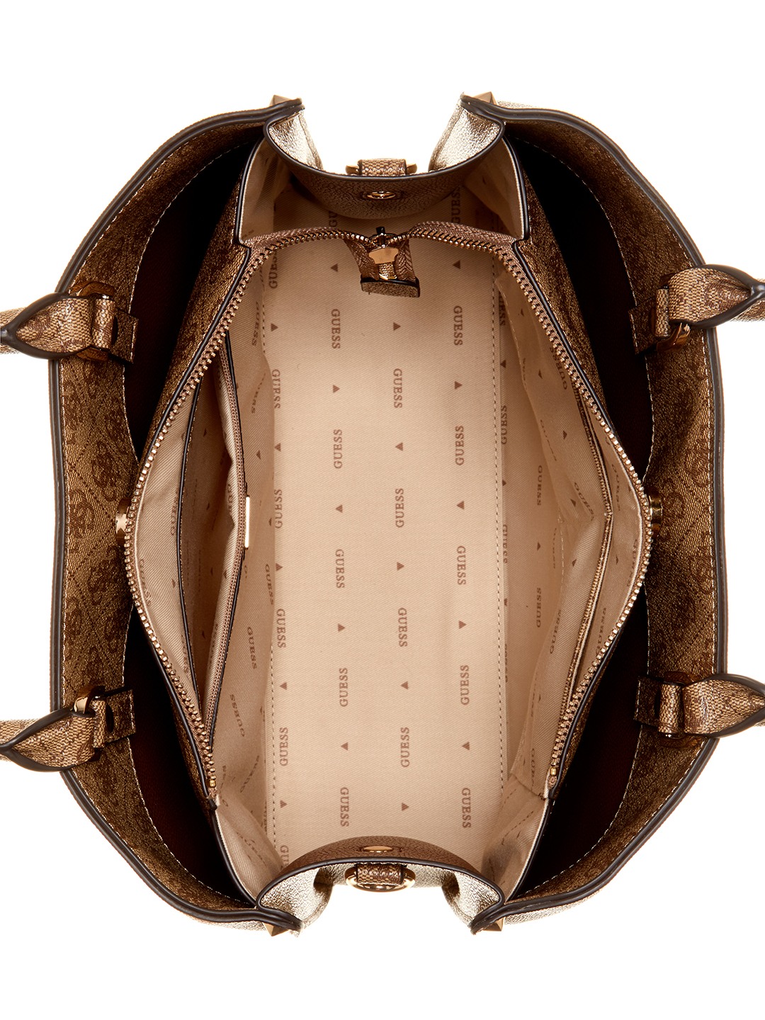 Guess Polyurethane Brown Printed Women Meridian Girlfriend Satchel Bag