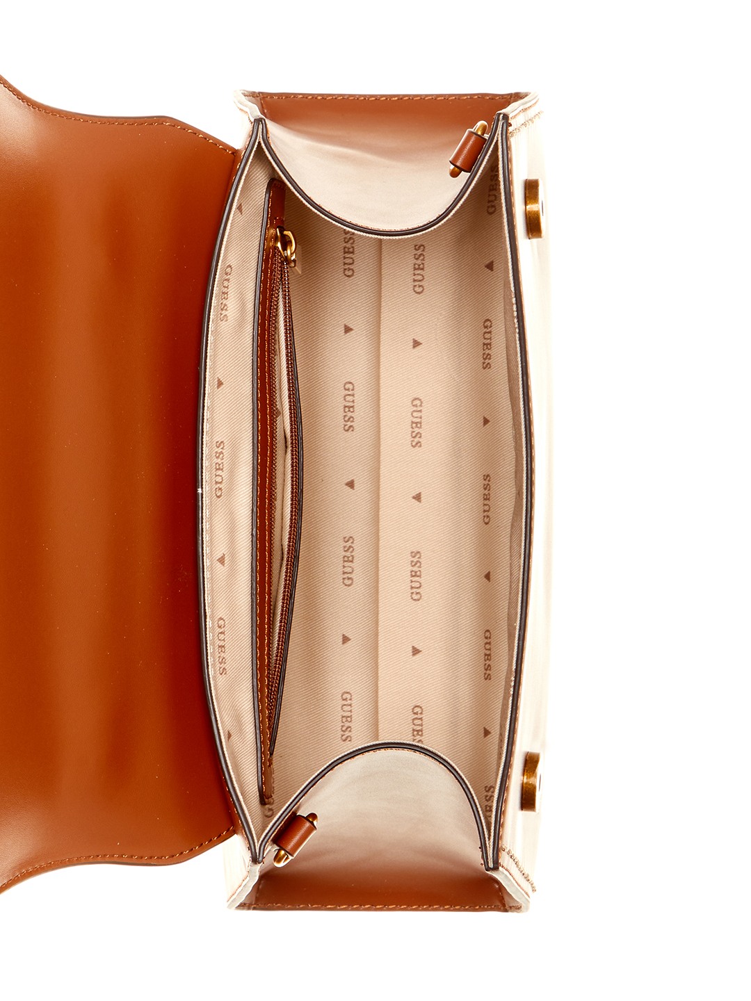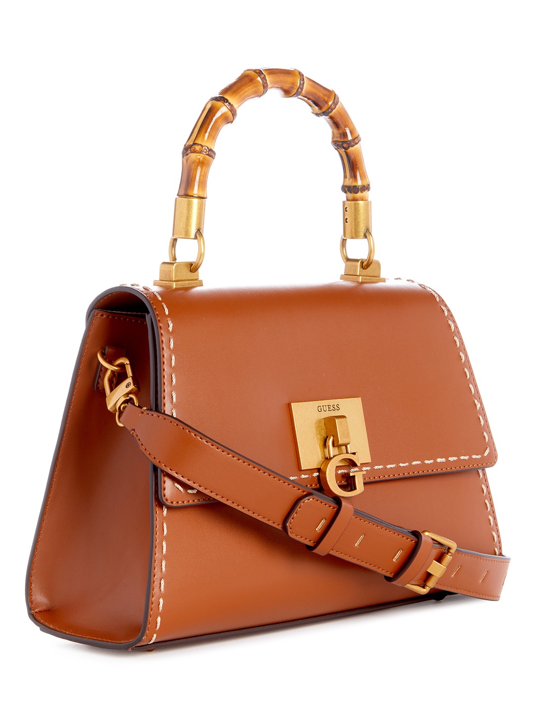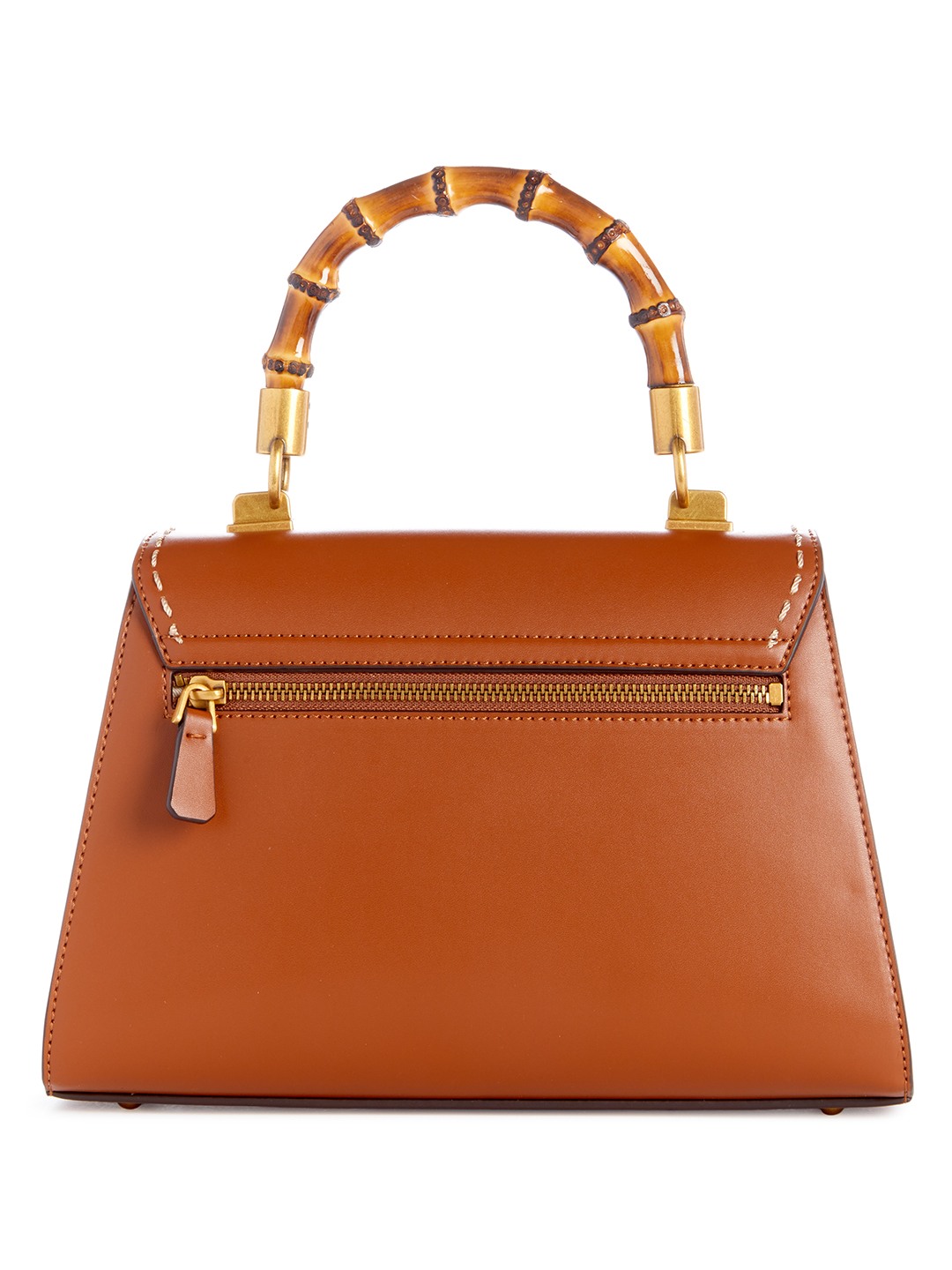 Guess Polyurethane Brown Solid Women Stephi Bamboo Flap Satchel Bag