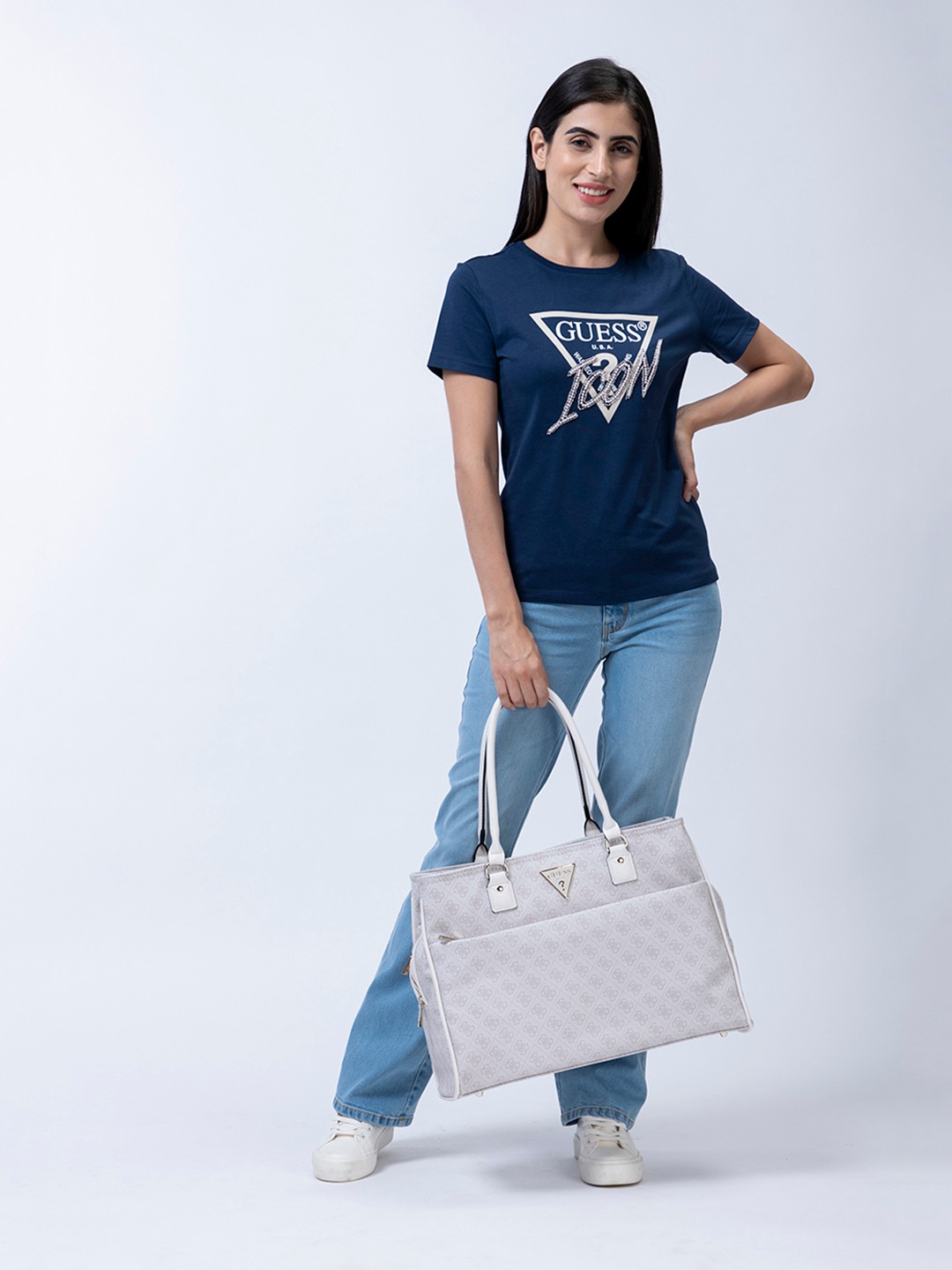 • The Guess Shopper Tote Bag is the perfect everyday companion. Spacious and stylish, it's crafted with premium materials and features iconic Guess branding. Carry your essentials in style with this versatile and durable tote.