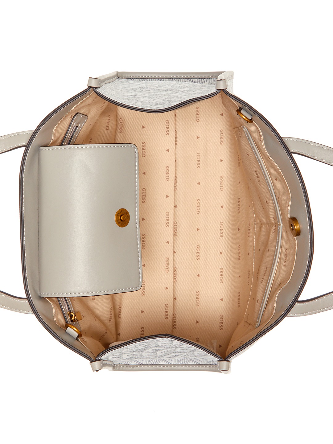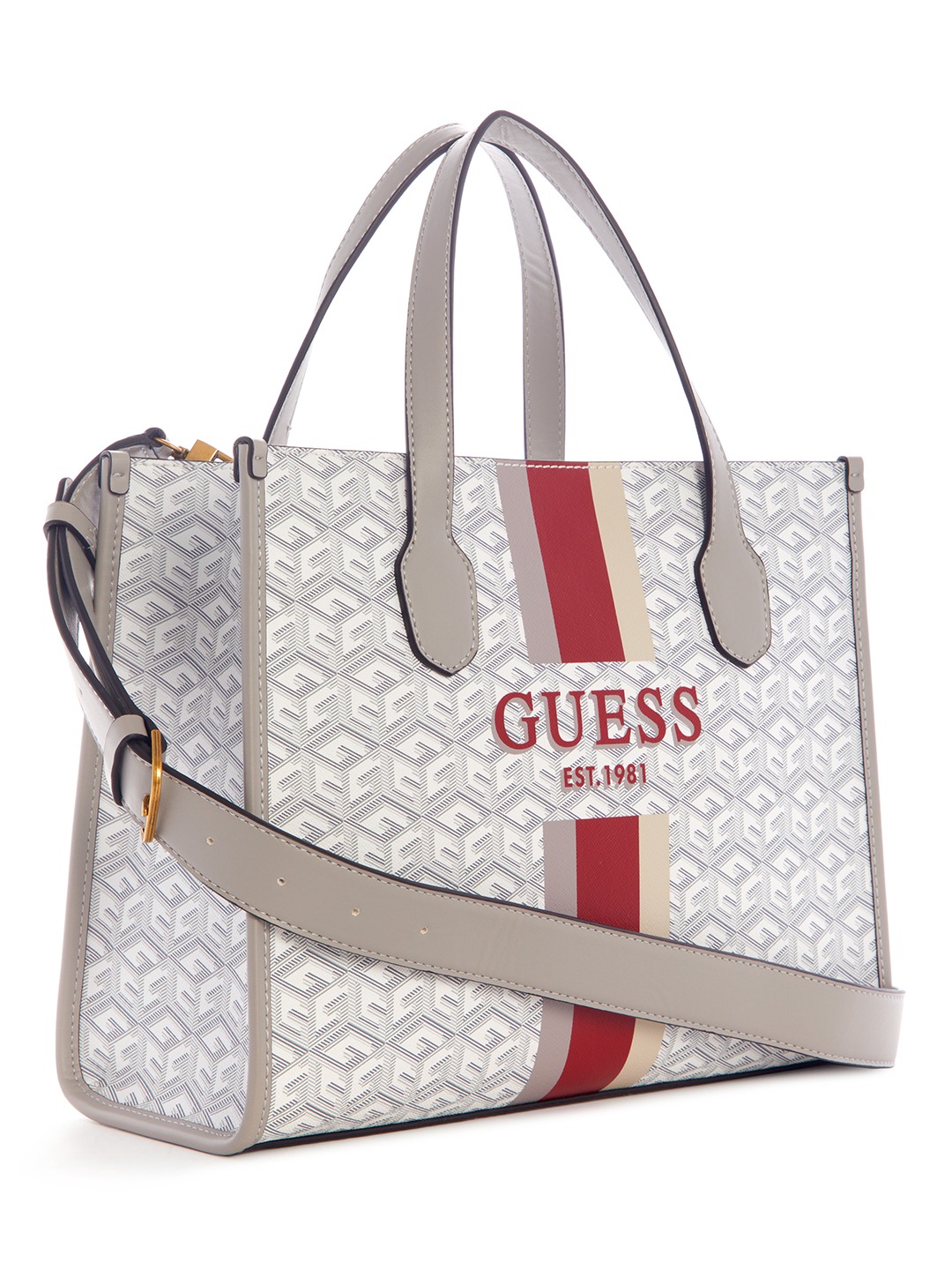 Guess Polyurethane Grey Printed Women Silvana Tote Bag