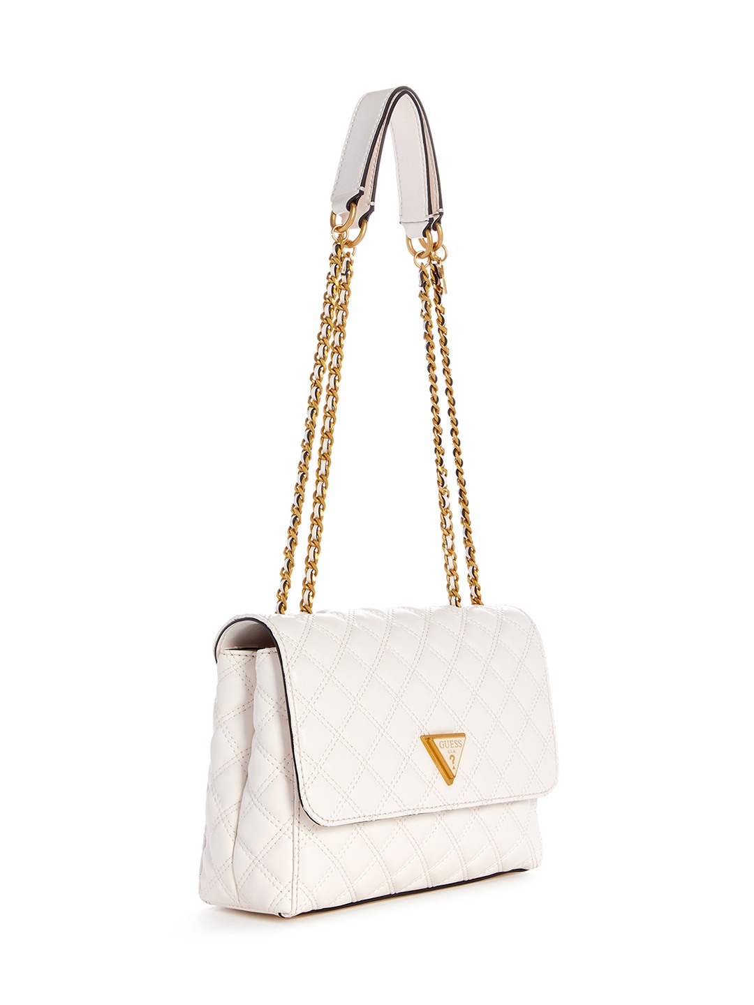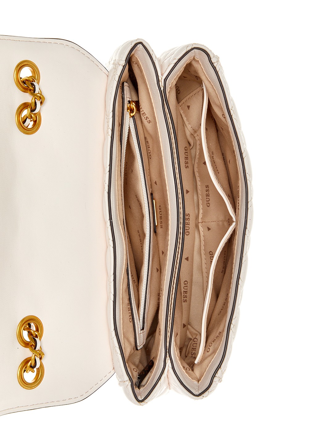 Guess Polyurethane Ivory Quilted Women Giully Convertible Flap Crossbody Bag