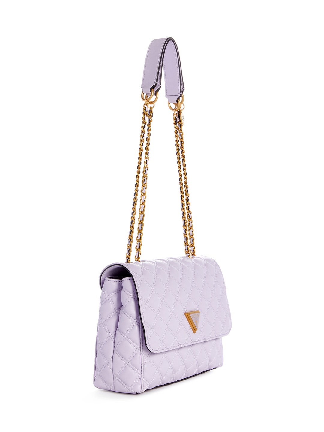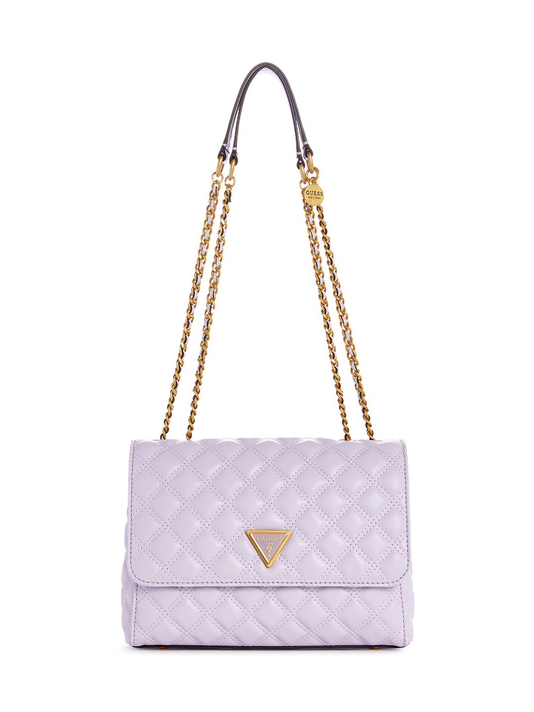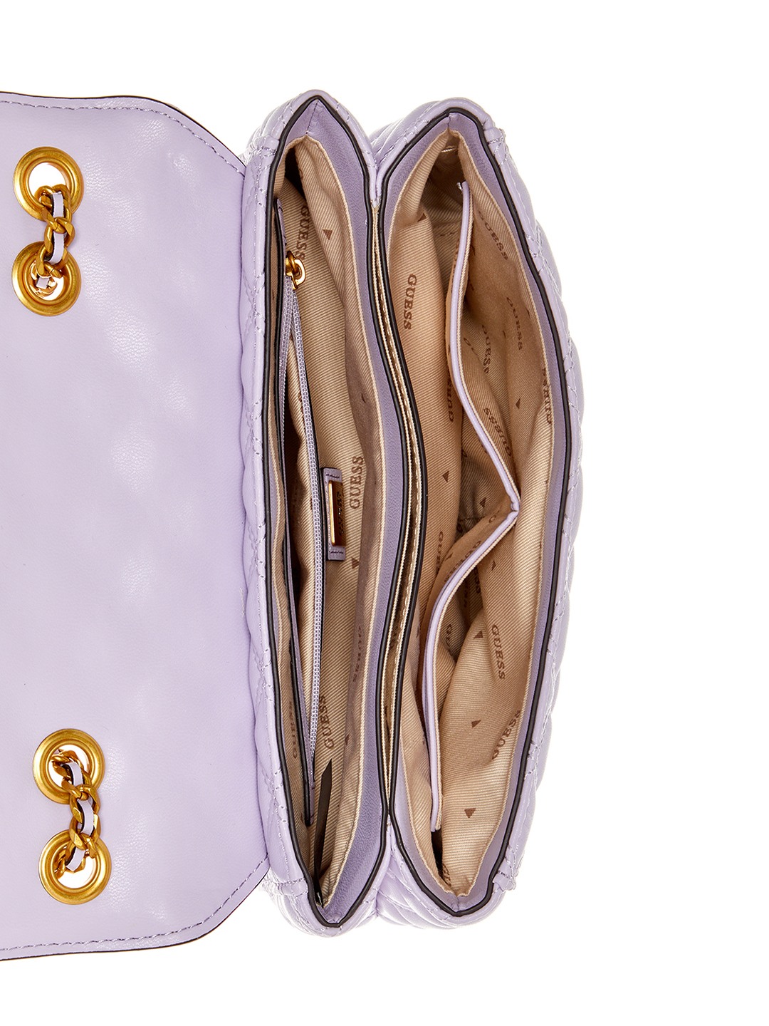 Guess Polyurethane Lavender Quilted Women Giully Convertible Flap Crossbody Bag