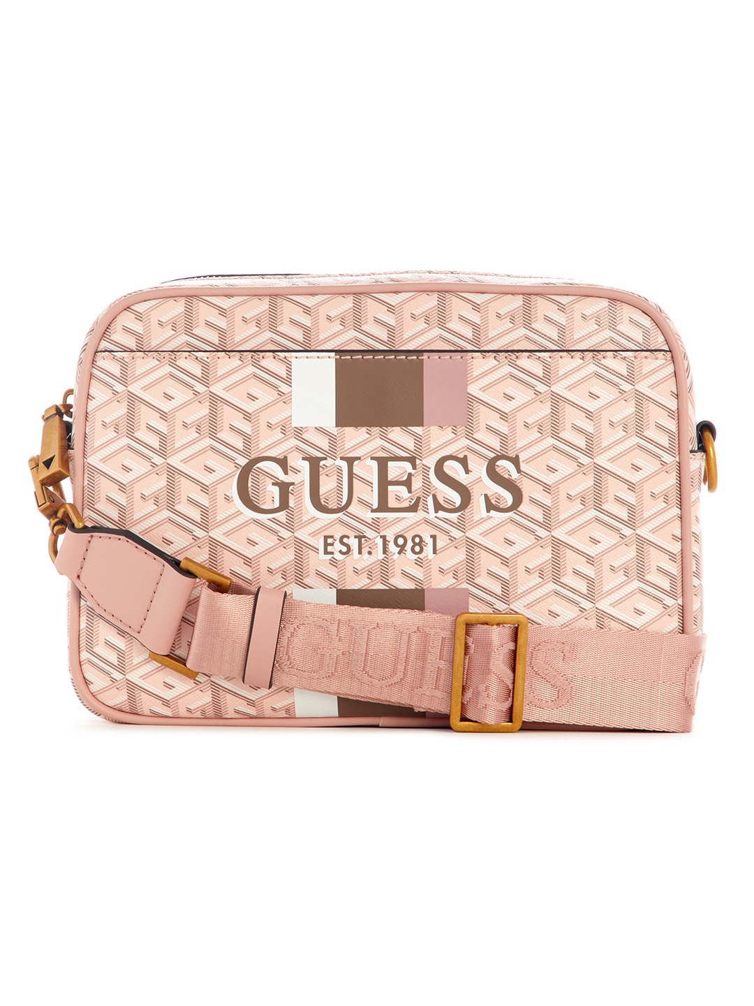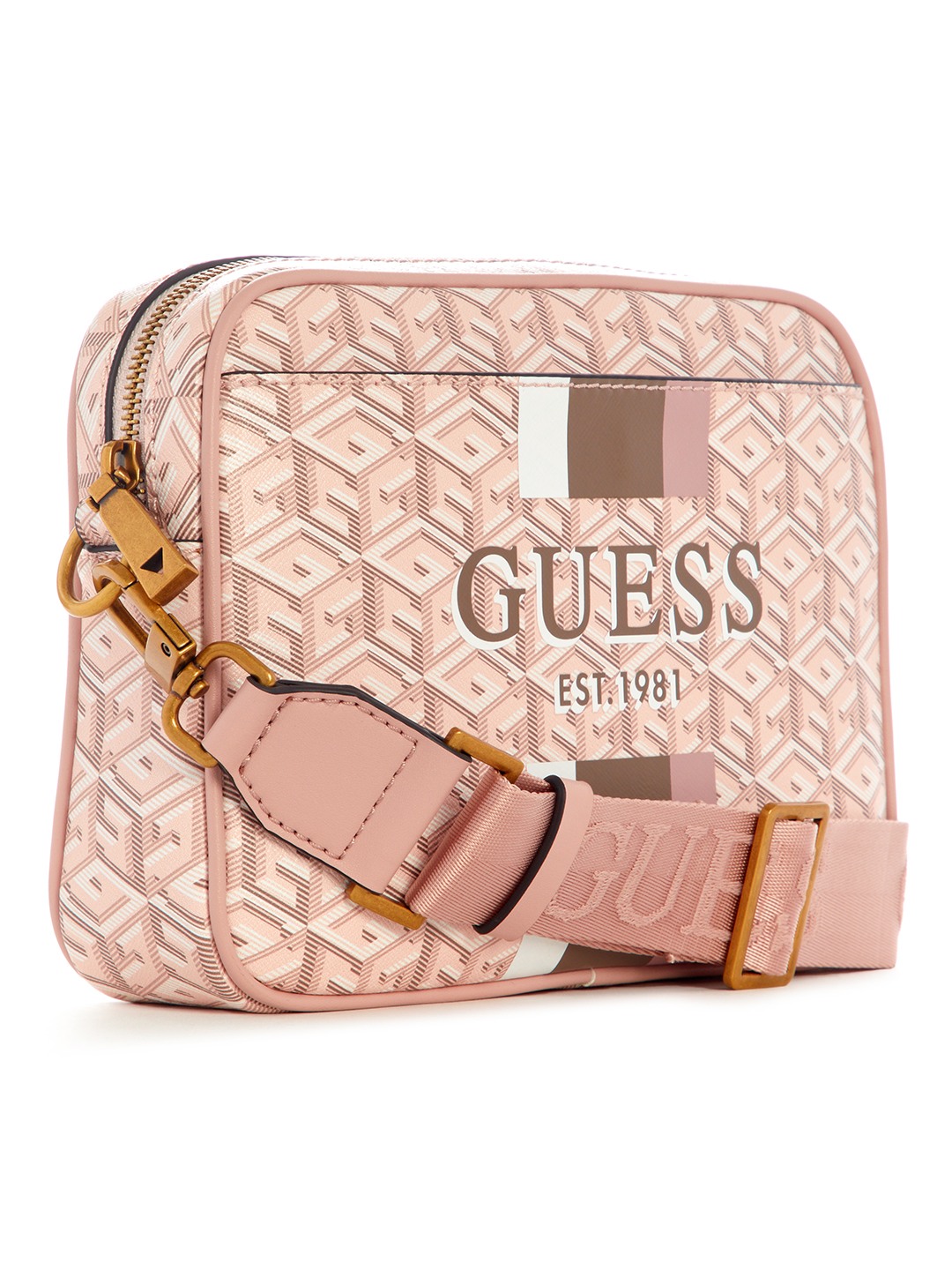 Guess Polyurethane Pink Printed Women Vikky Camera Bag