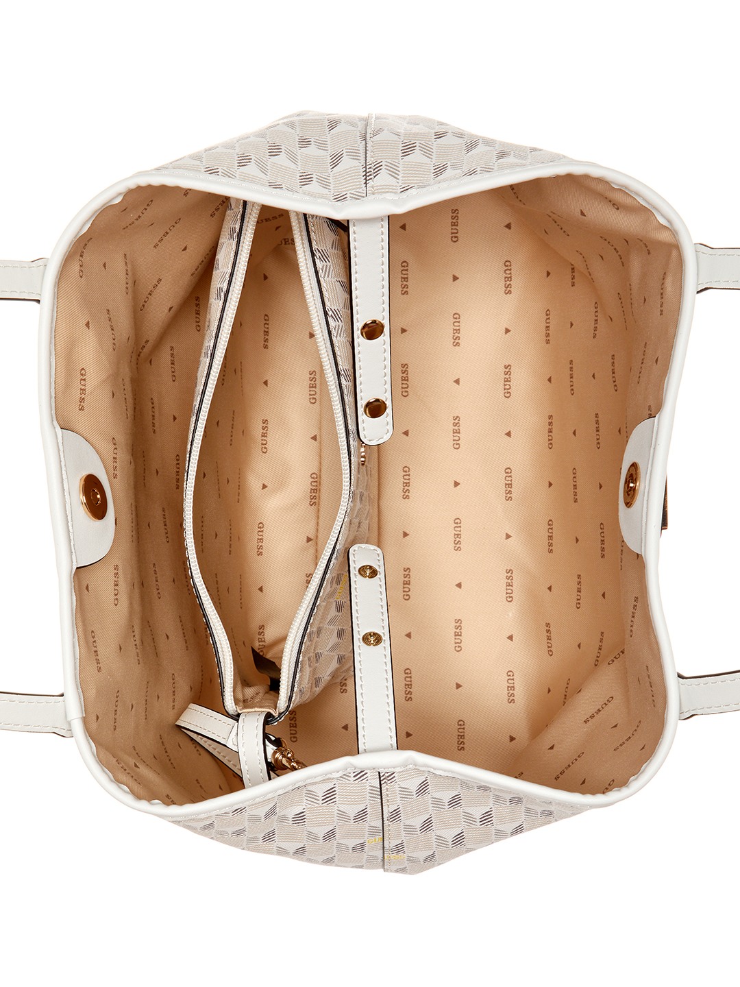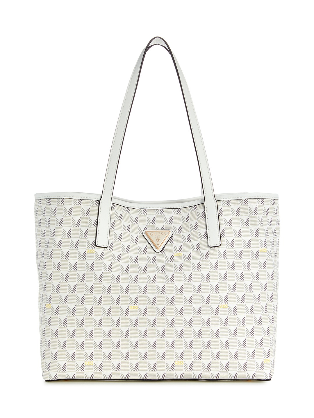 Guess Polyurethane White Printed Women Vikky Ii 2 In 1 Tote Bag