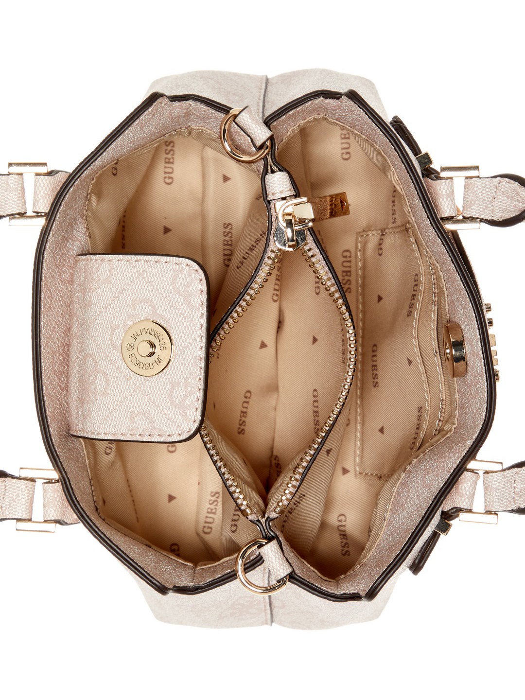 Guess Women Beige Geometric Adjustable Detachable Strap Mini Satchel Bag
