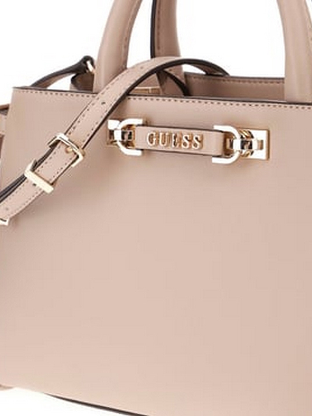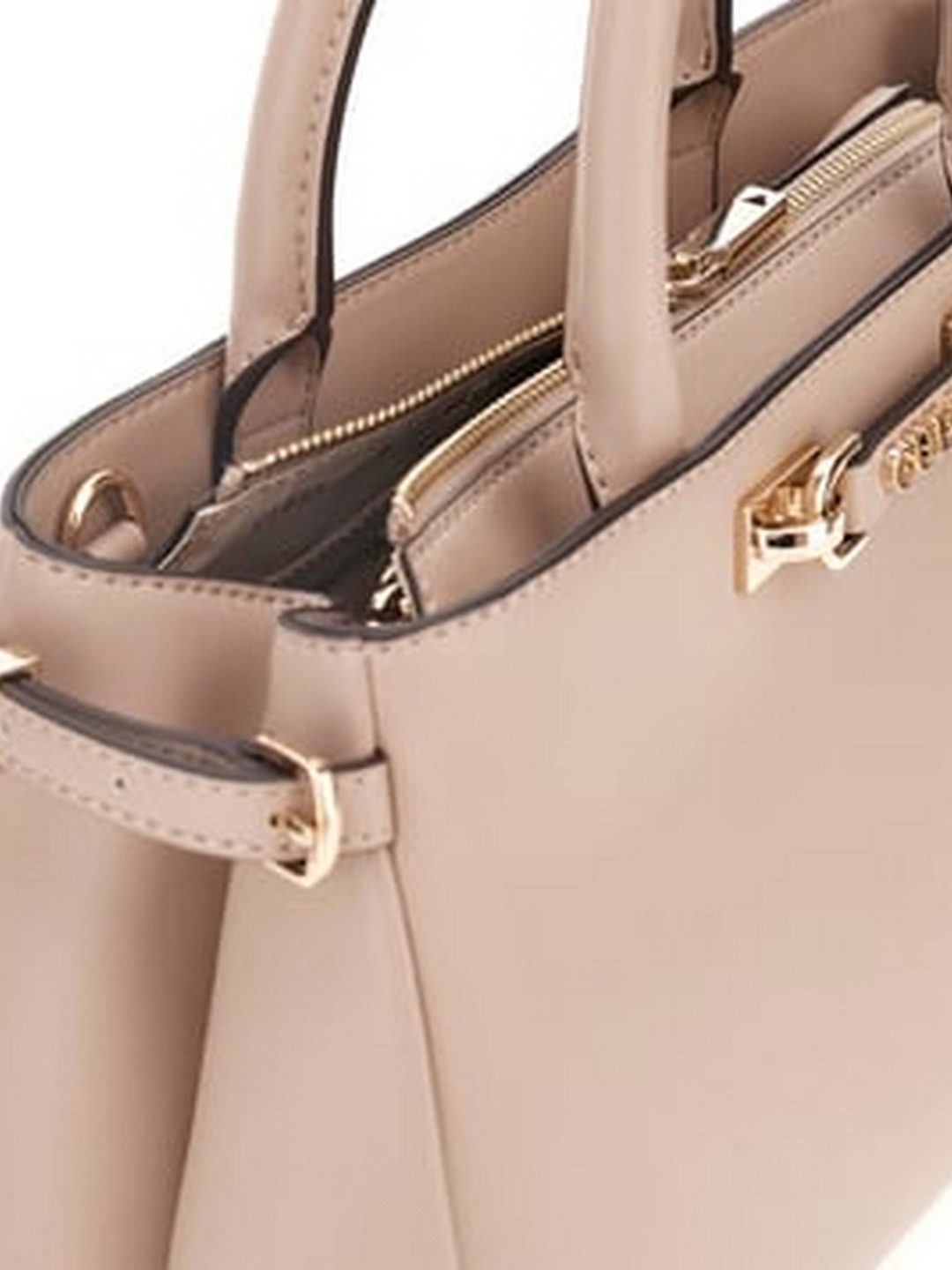 Guess Women Beige Textured Adjustable Detachable Strap Satchel Bag