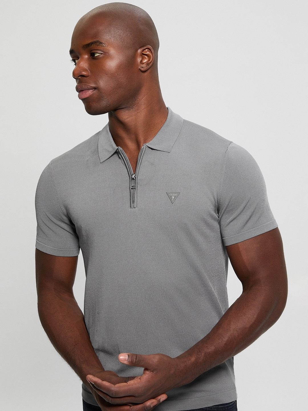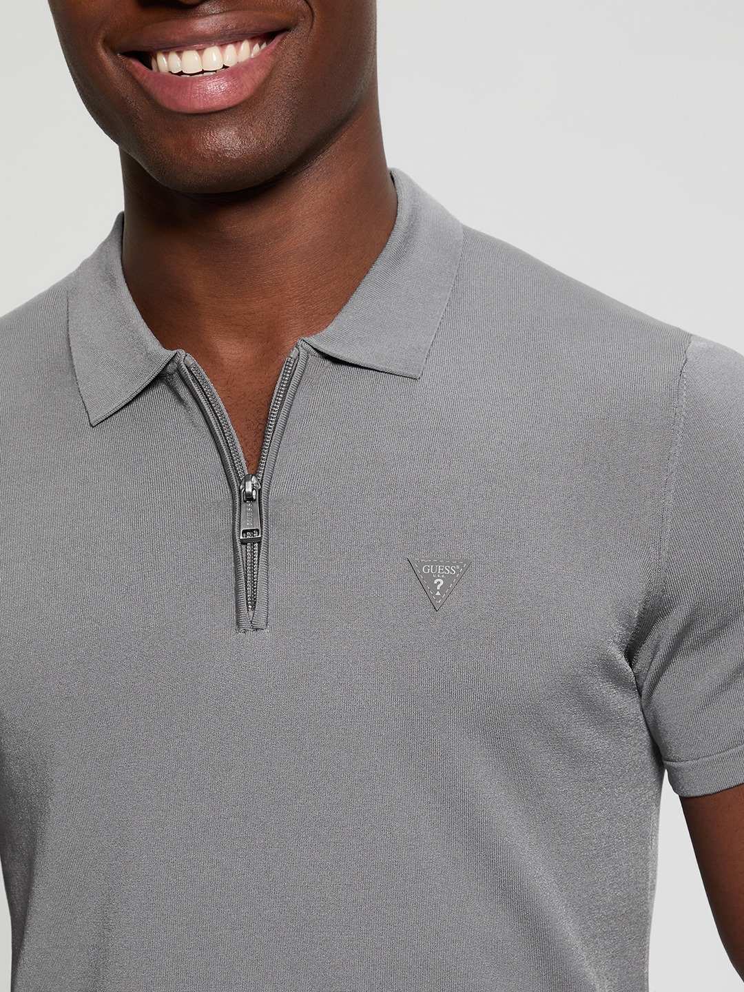 Elevate your style with this men's grey sweater, featuring a solid pattern and short sleeves. Crafted from a soft viscose blend, it offers comfort and durability. The collar neck adds a touch of sophistication, while the zipper closure ensures easy wear. Perfect for versatile, everyday elegance.