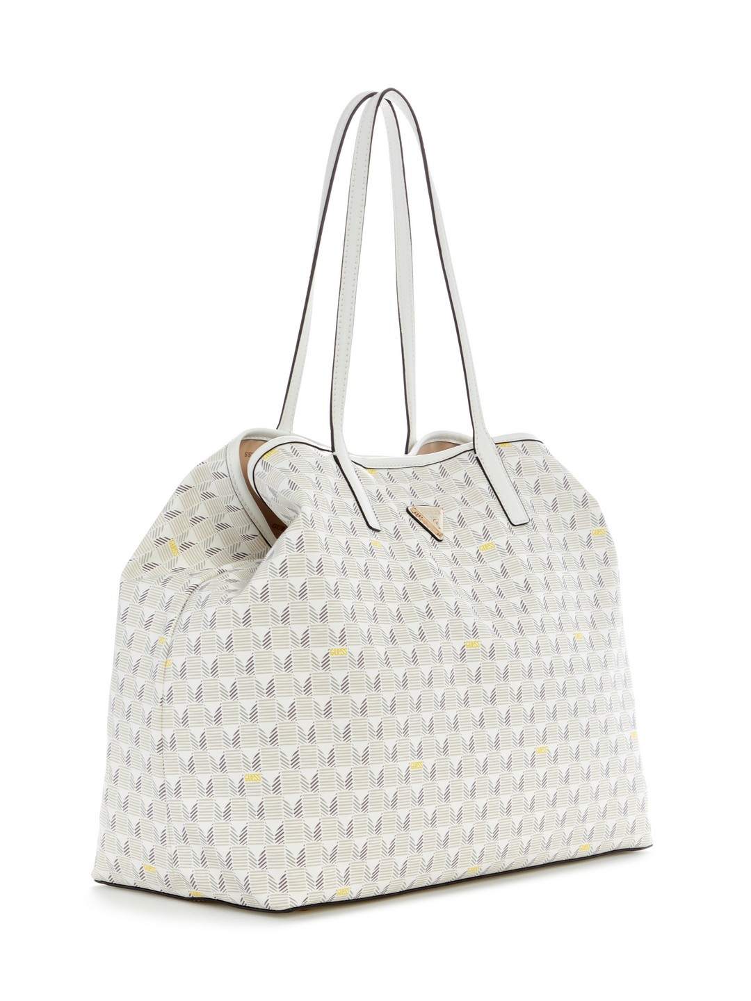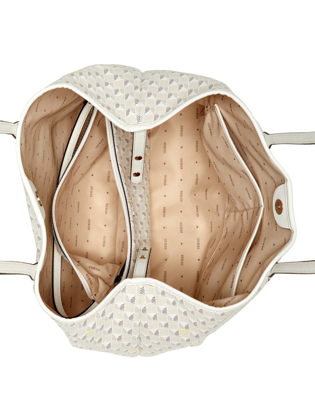 Guess Women White Geometric Top Handles Tote Bag with Inner Bag