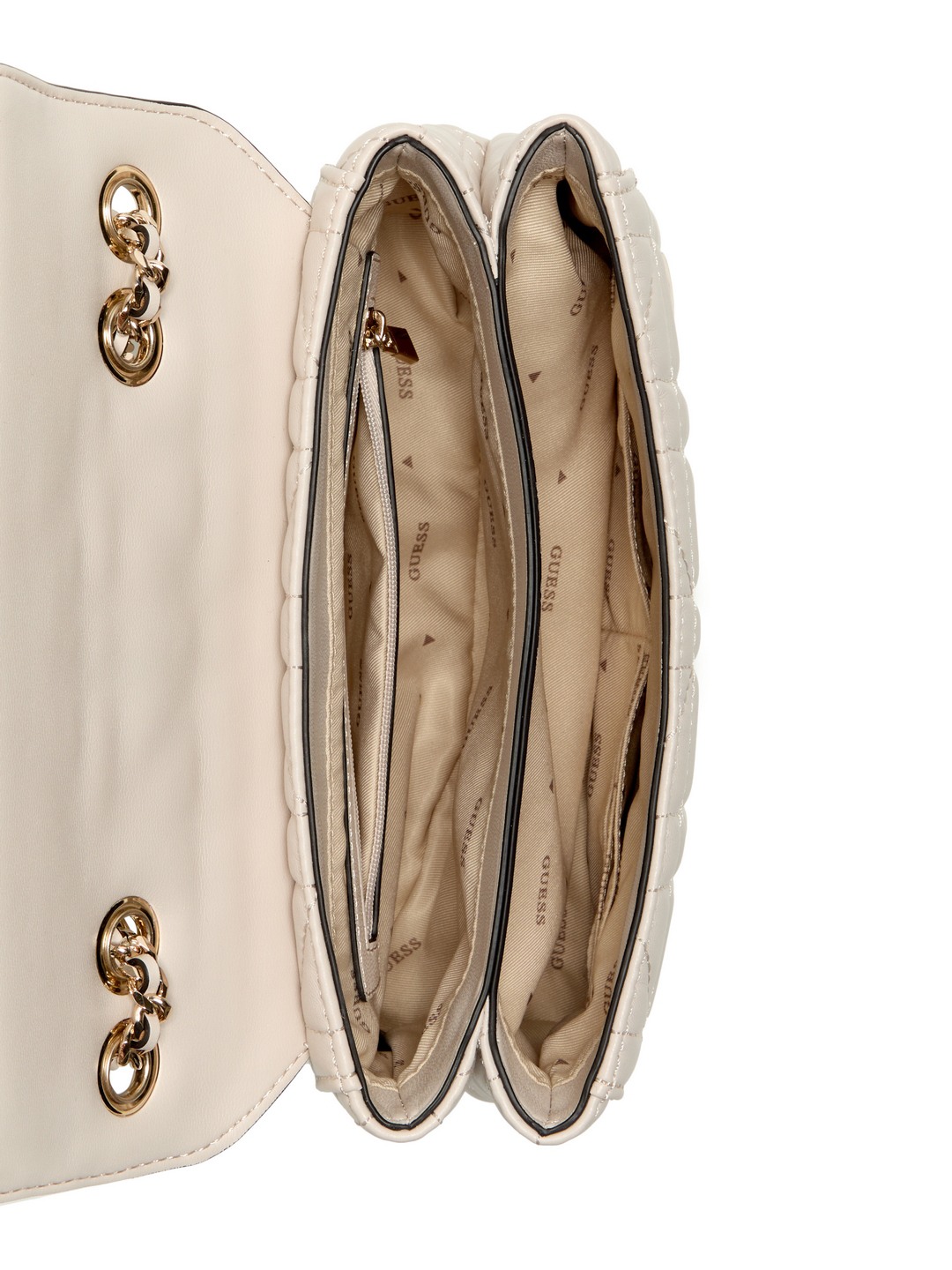 Guess Women Beige Quilted Chain Strap Crossbody Bag