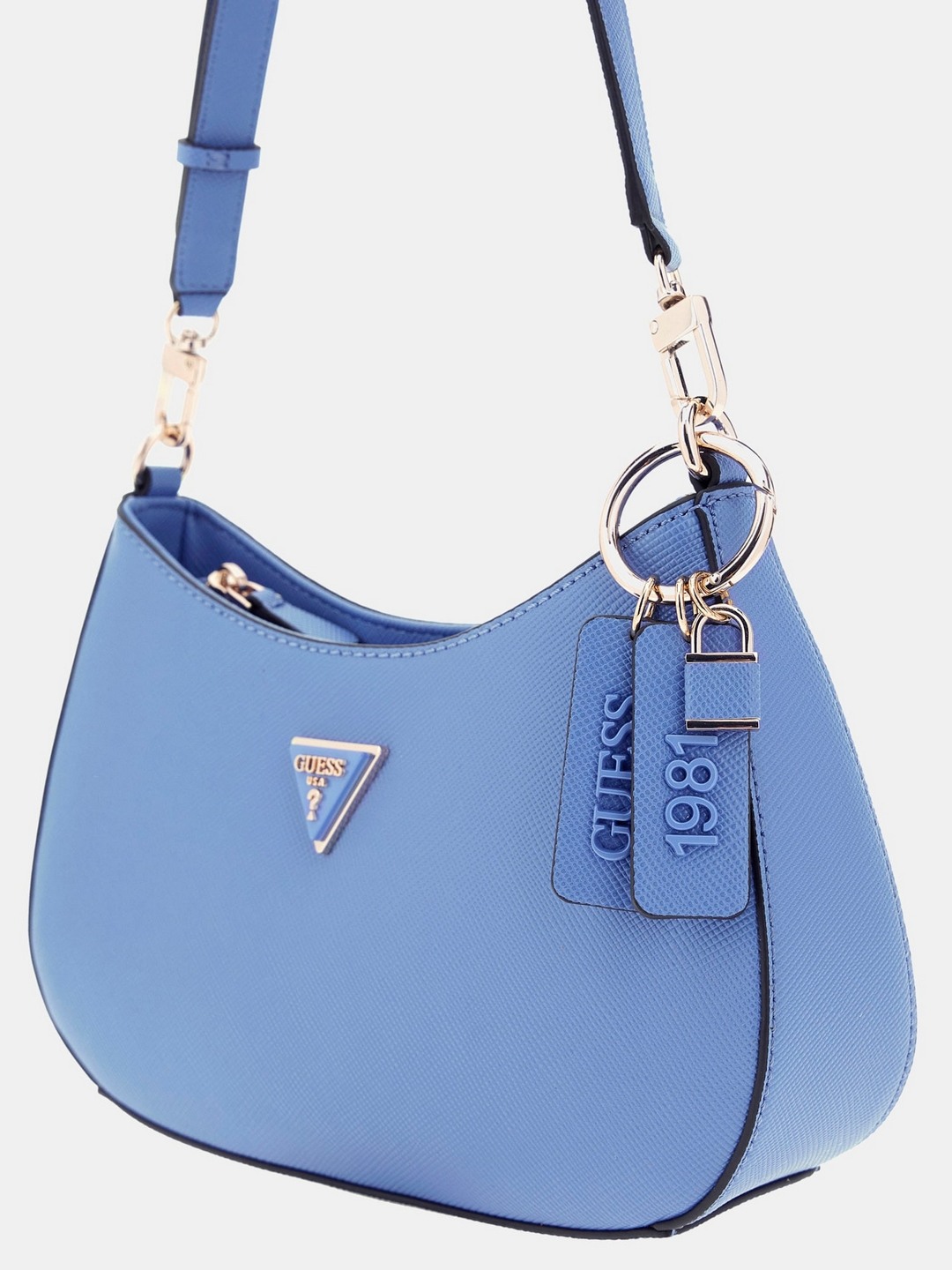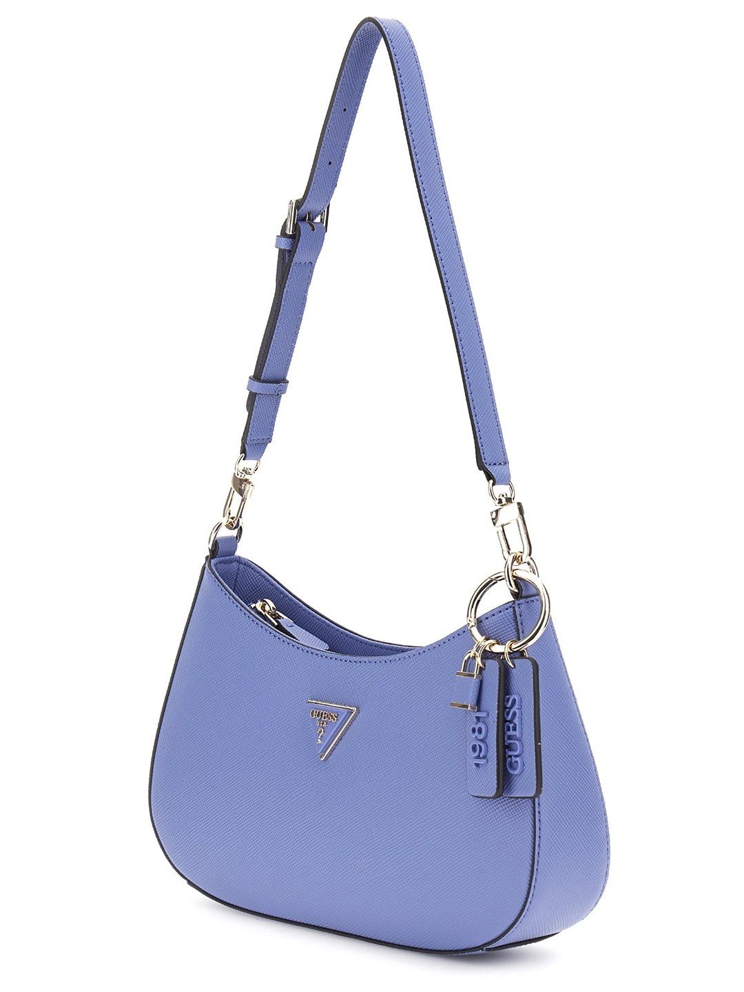 Guess Stormy Blue Solid Noelle Top Zip Shoulder Bag