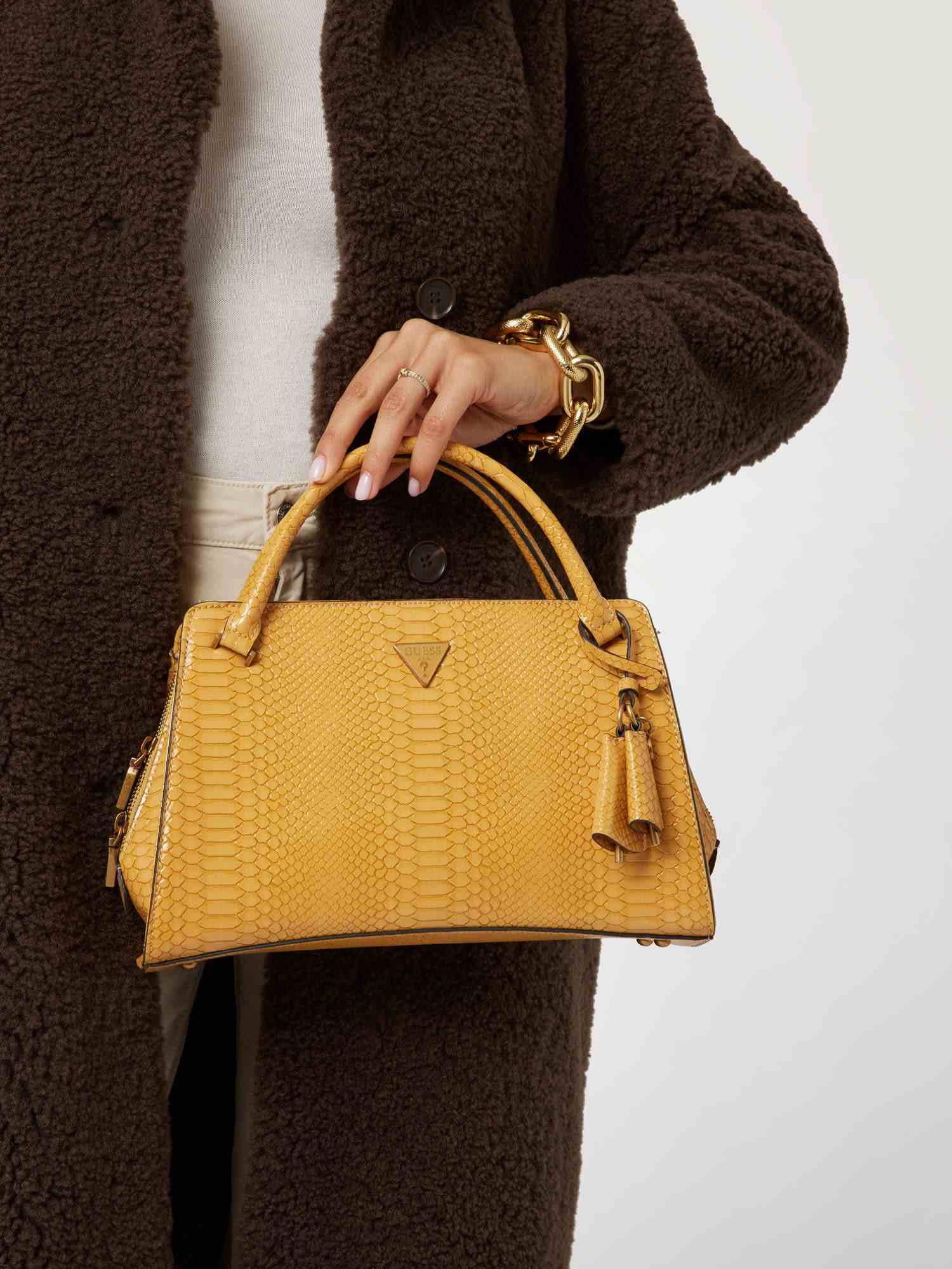 • Discover the epitome of style with Guess's satchel bags, designed for the fashion-forward individual. Each piece combines functionality with chic, contemporary aesthetics, featuring luxurious materials and exquisite craftsmanship. Perfect for any occasion, a Guess satchel is your go-to accessory for a polished, sophisticated look. Elevate your style today.