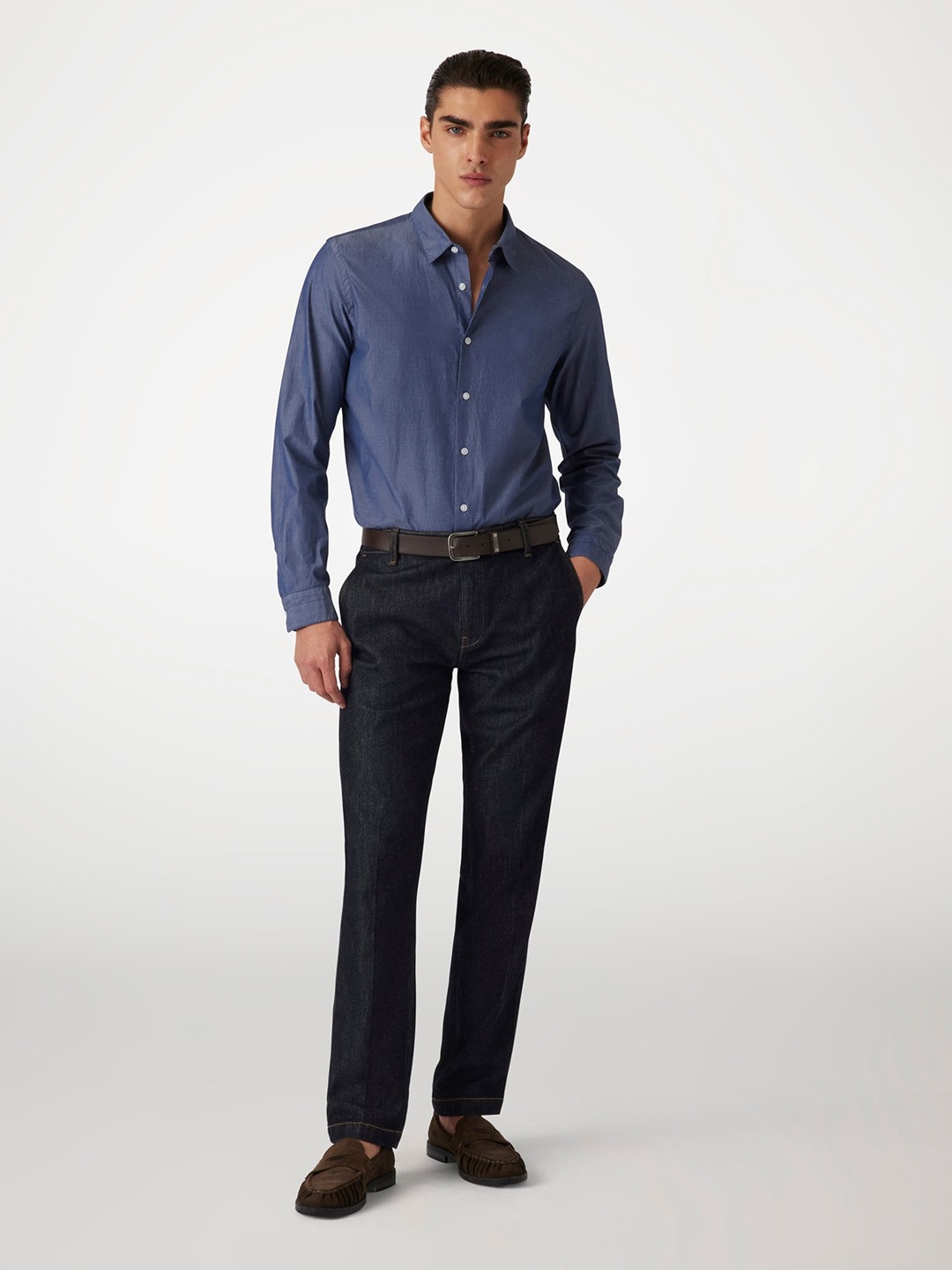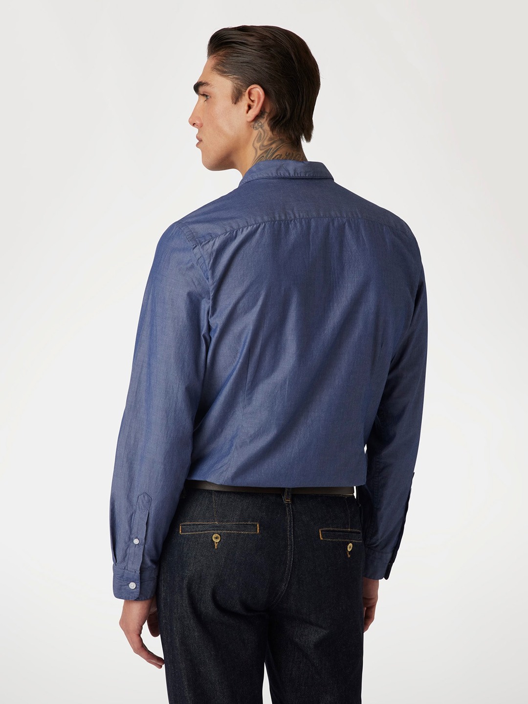 Elevate your wardrobe with our classic blue shirt, crafted from pure cotton for ultimate comfort. Featuring a solid pattern, long sleeves, and a collar neck, this timeless piece offers a polished look. The button closure ensures a perfect fit, making it an essential addition to any man's collection.