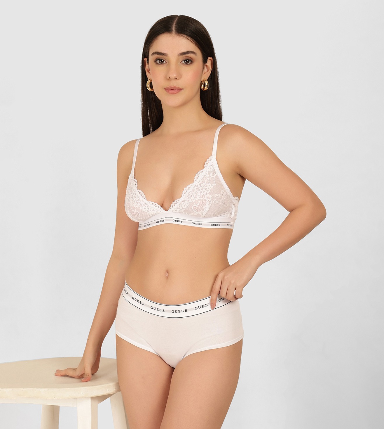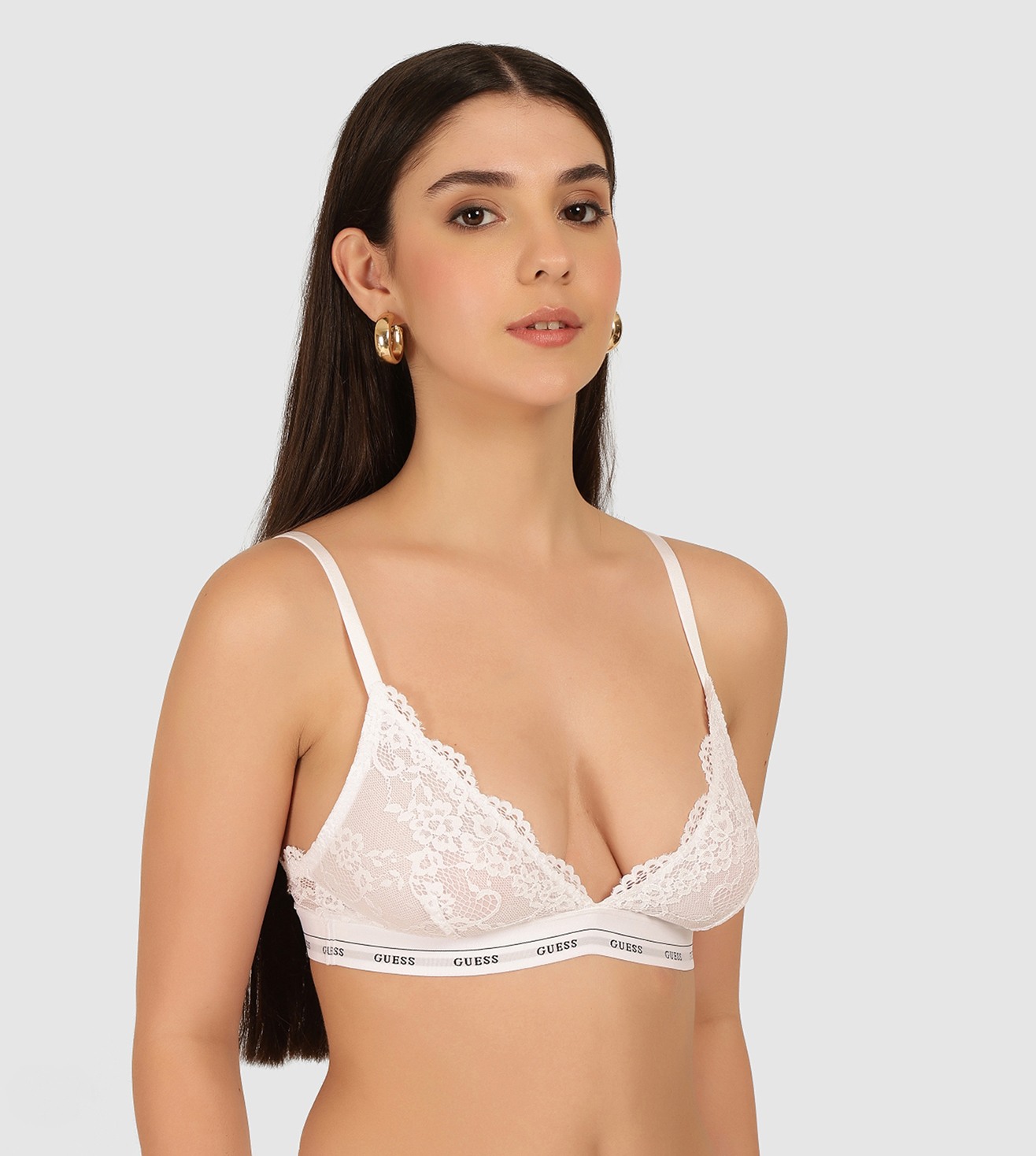 Guess White Cotton Solid/Plain Women Pushup Bra