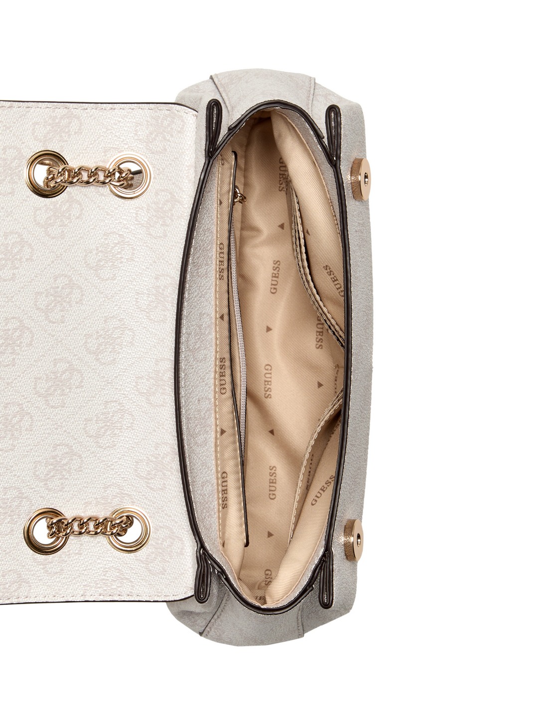 Guess White Logo Printed Katya Convertible Flap Crossbody Bag