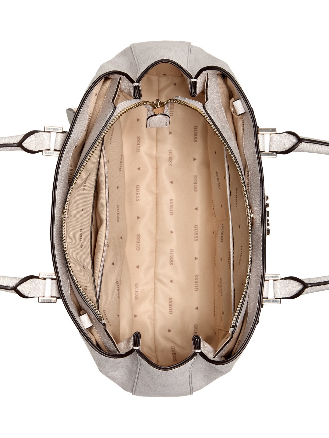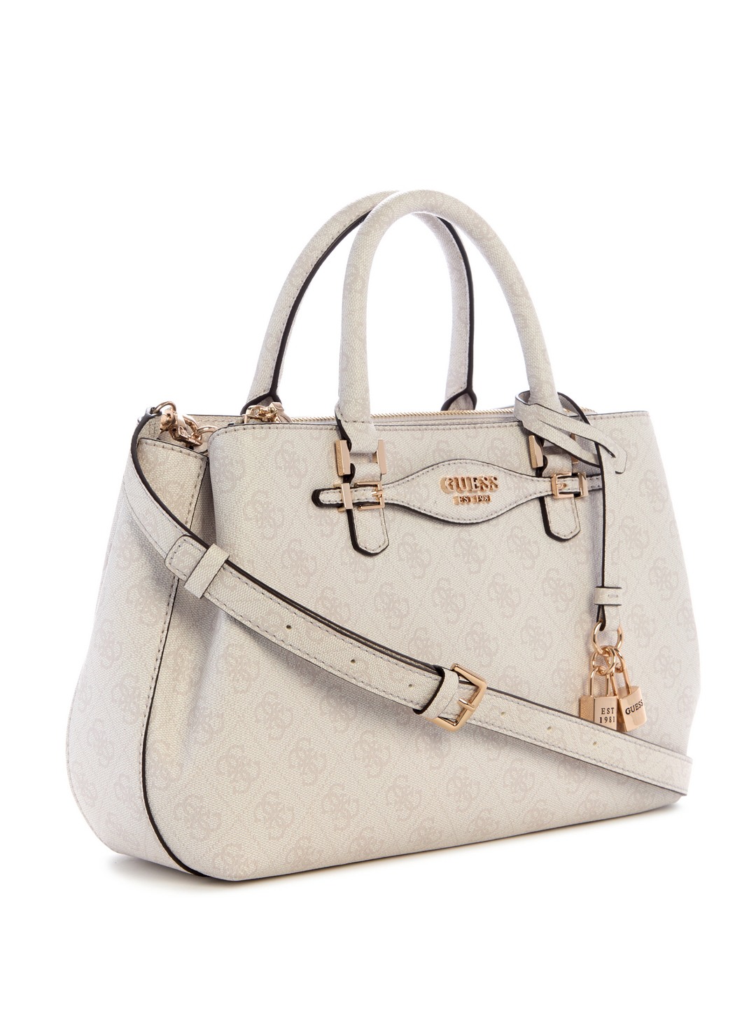 Guess White Logo Printed Katya Girlfriend Satchel Bag