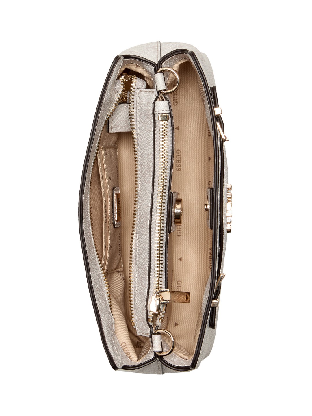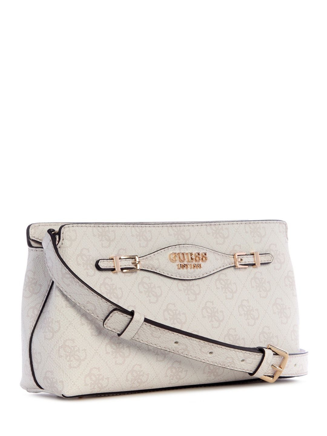 Guess White Logo Printed Katya Top Zip Crossbody Bag