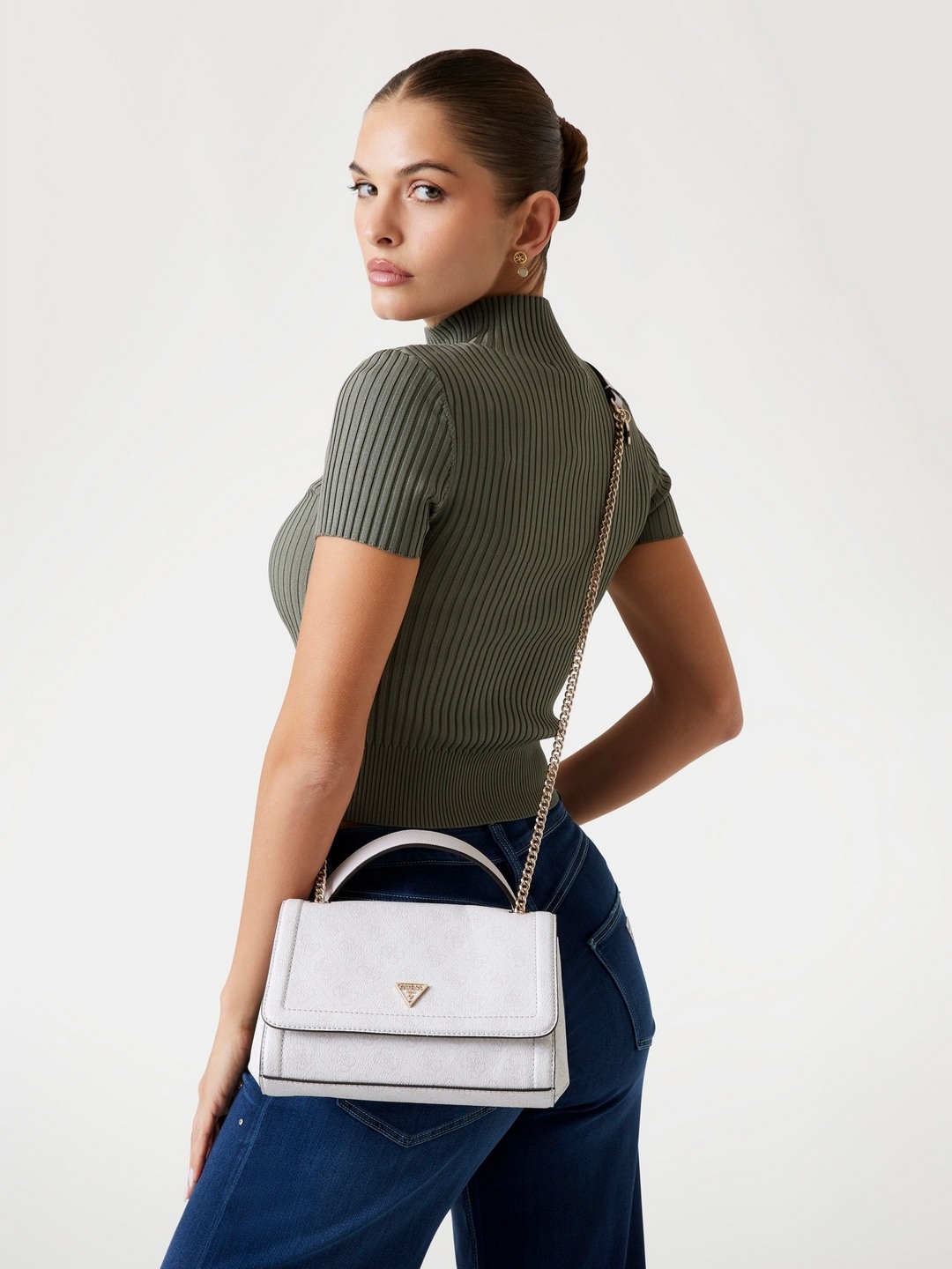 Guess White Logo Printed Noelle Convertible Flap Crossbody Bag