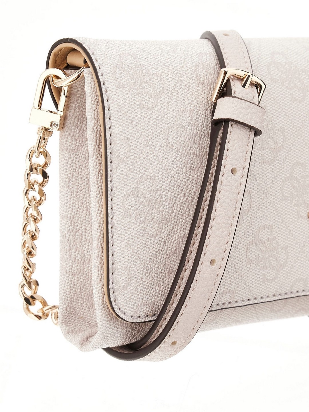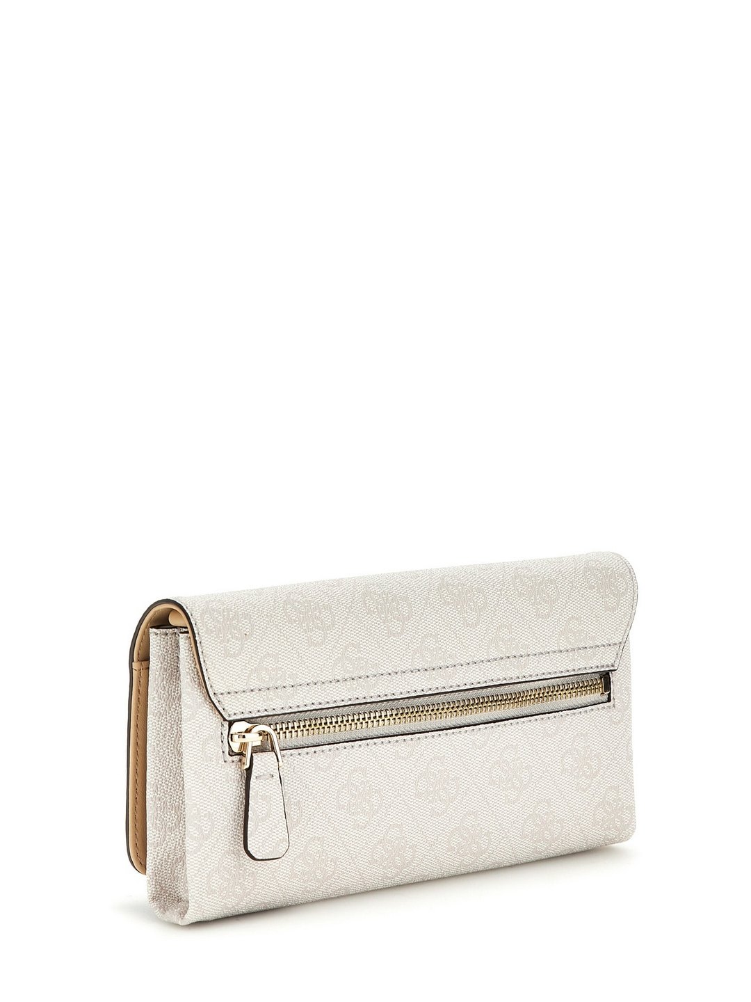 Guess White Logo Printed Noelle Flap Organizer Crossbody Bag