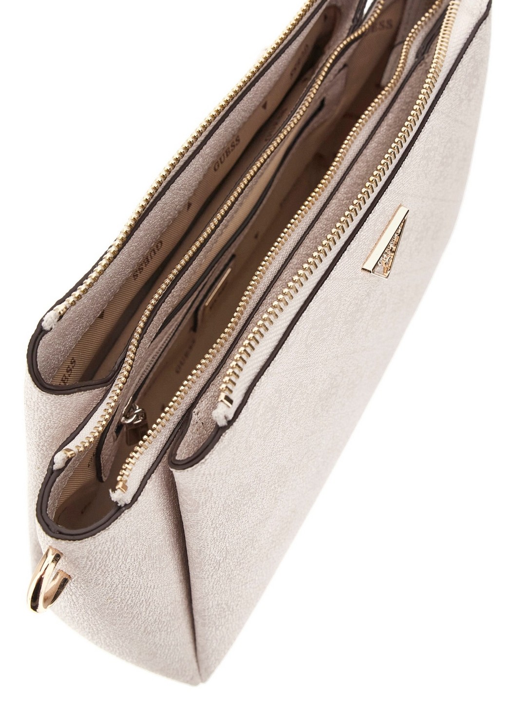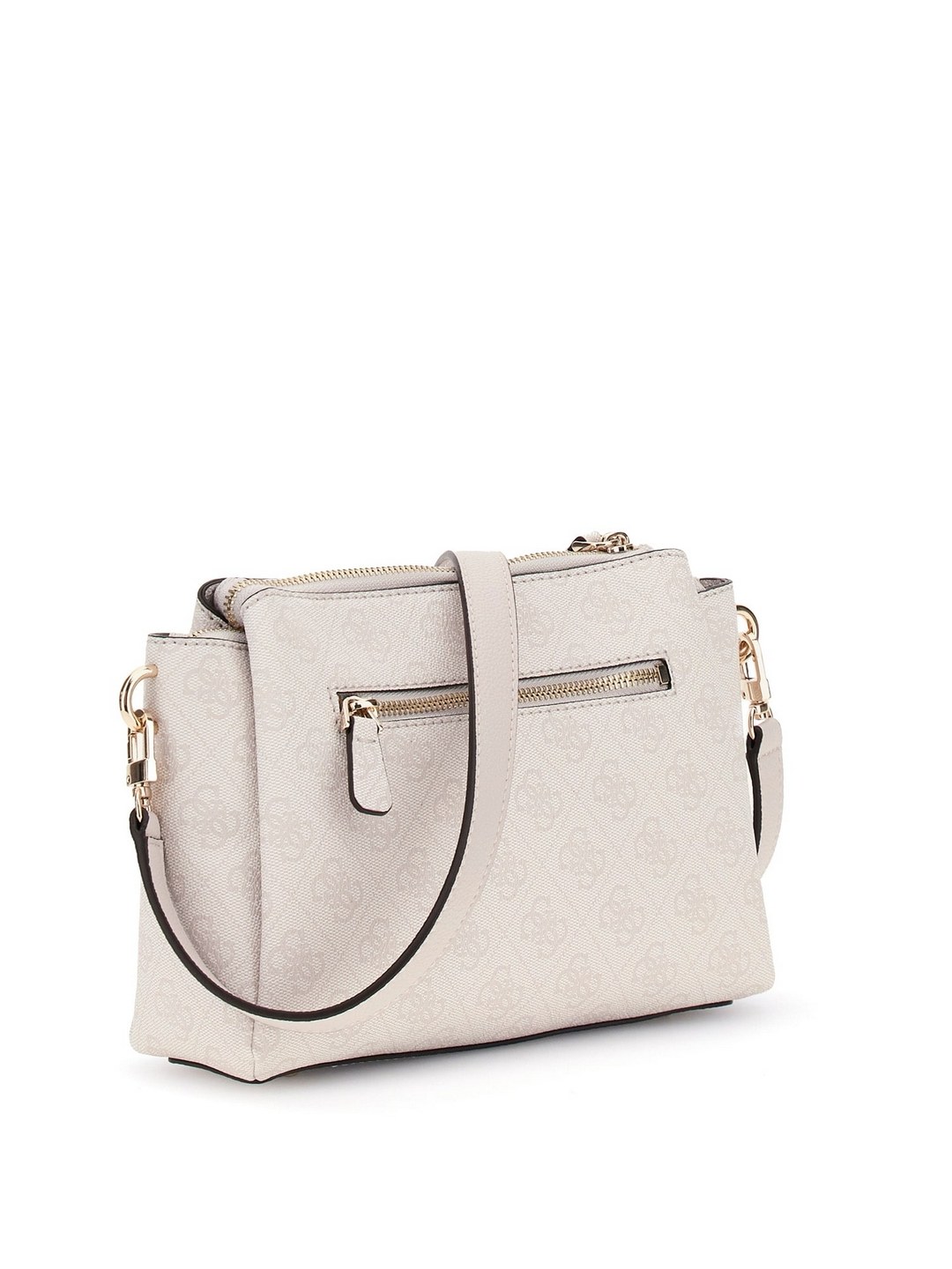 Guess White Logo Printed Noelle Tri Comp Crossbody Bag