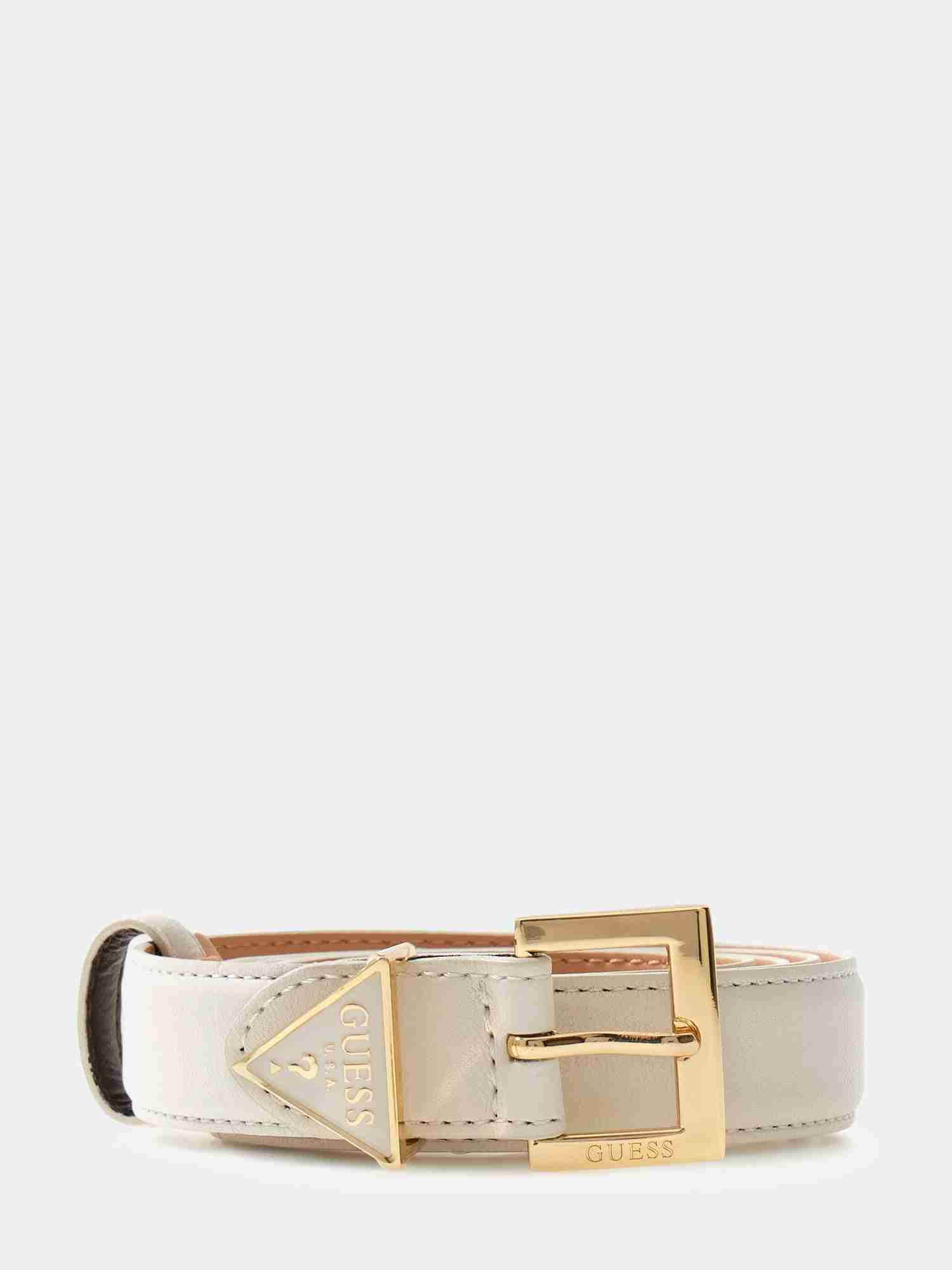 Elevate your outfit with the Guess White Polyester Solid Women Belt. This stylish accessory adds a touch of sophistication to any look, whether you're dressing up for a formal event or adding a trendy edge to your everyday attire. Made with high-quality polyester material, this belt is durable and versatile, perfect for cinching in your waist or adding a pop of color to your ensemble. The sleek white design complements a variety of outfits, making it a must-have accessory for fashion-forward individuals. Upgrade your wardrobe with this chic and timeless piece from Guess.