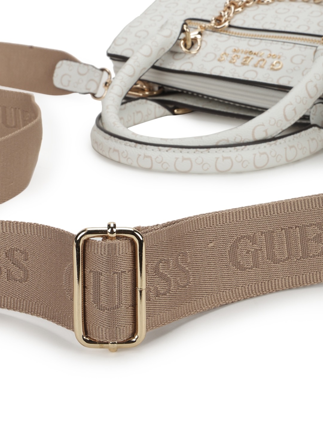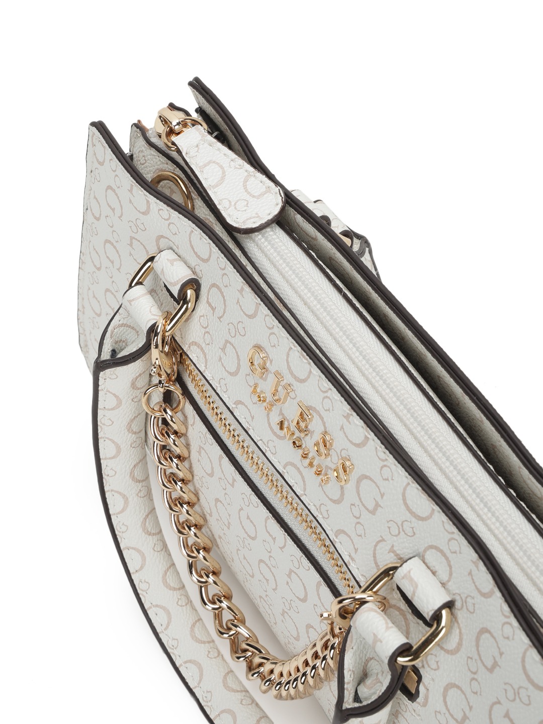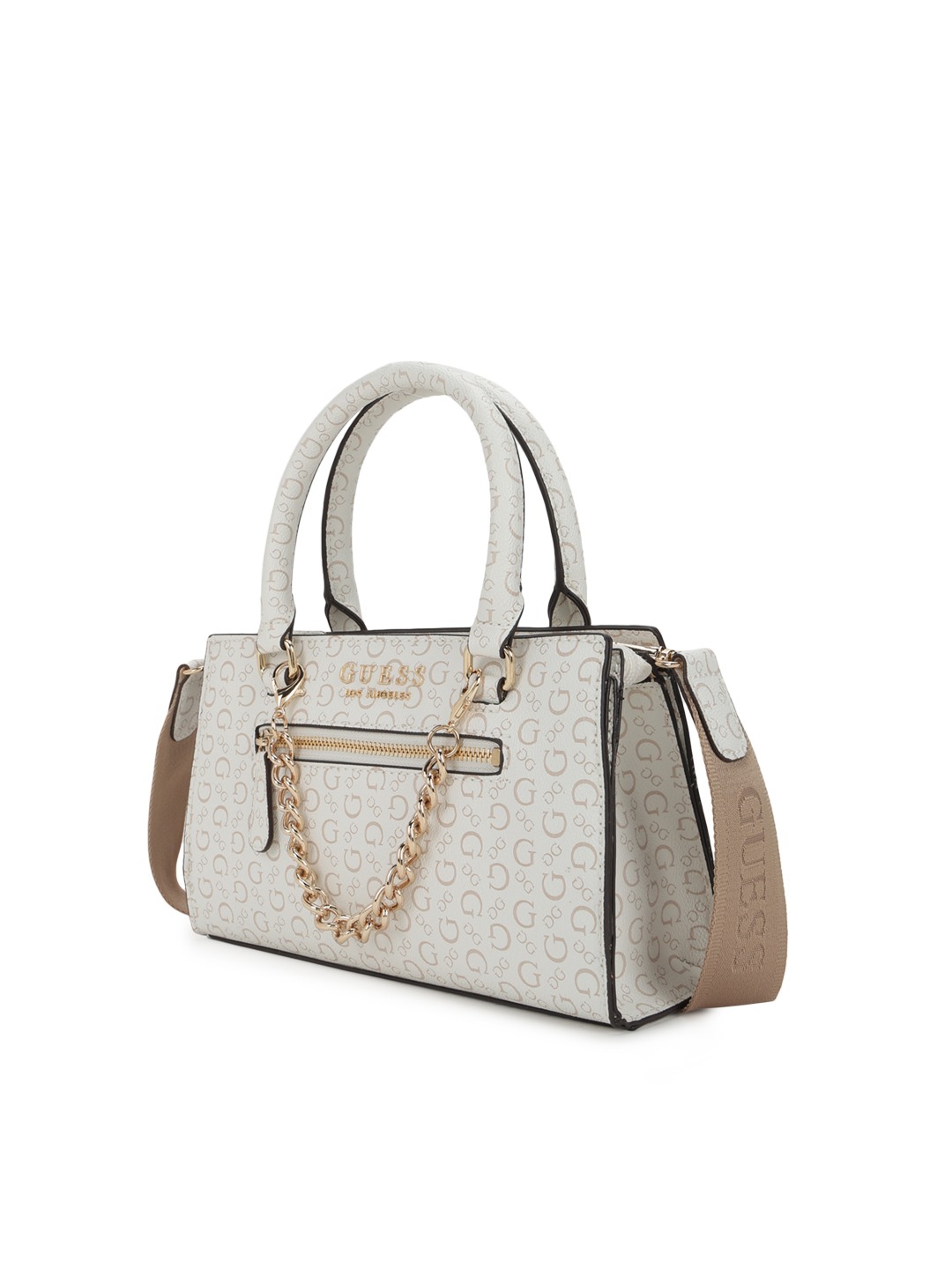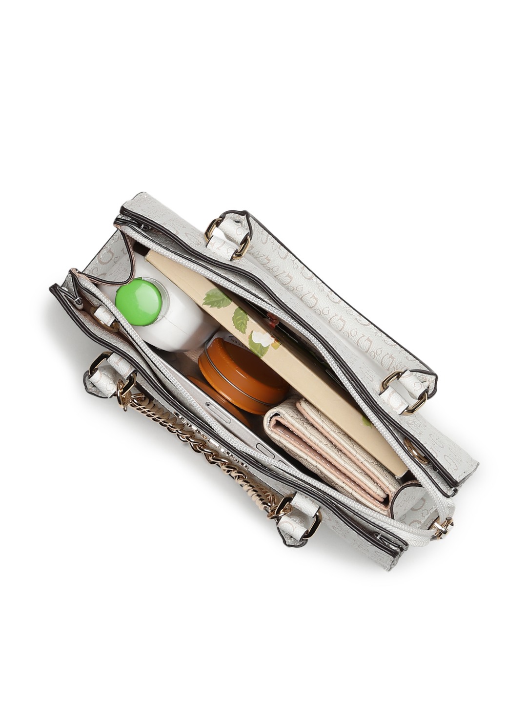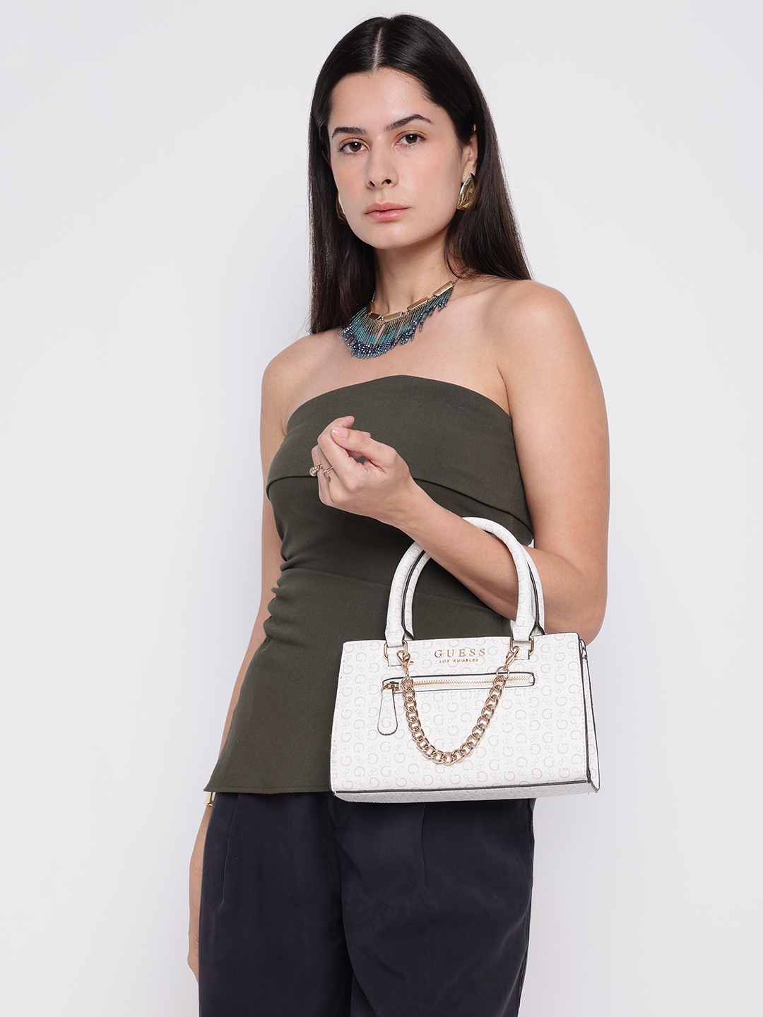 Discover the perfect blend of style and functionality with our Satchel in White crafted from durable PVC fabric. This chic accessory features a vibrant printed pattern that adds a touch of elegance to any outfit. Designed for the modern woman, it offers ample space to keep your essentials organized and easily accessible. The sturdy handles ensure comfortable carrying while the secure zip closure keeps your belongings safe. Whether for work or leisure this satchel is a versatile addition to your wardrobe that complements any occasion.