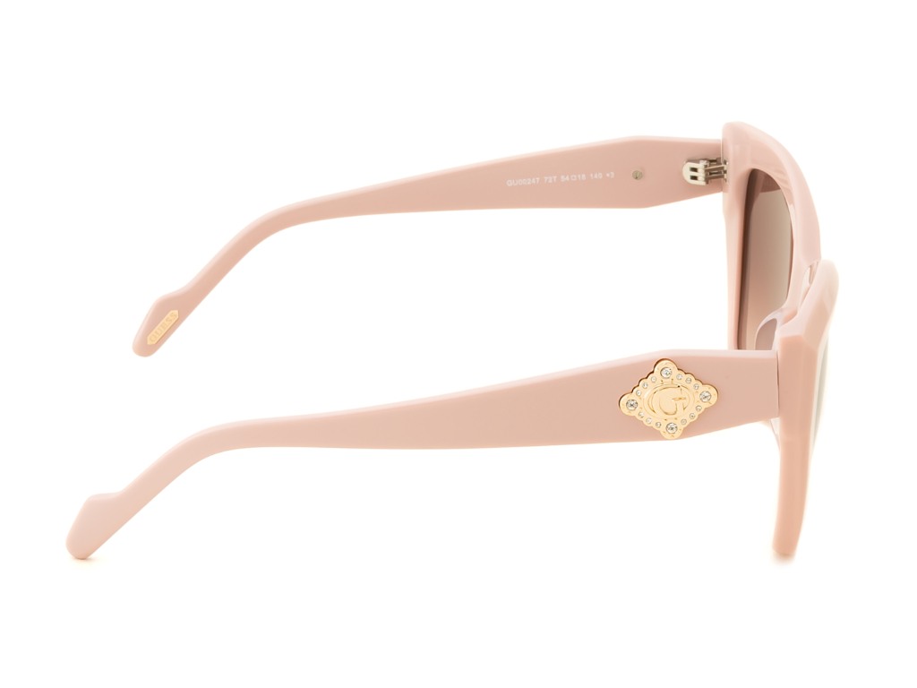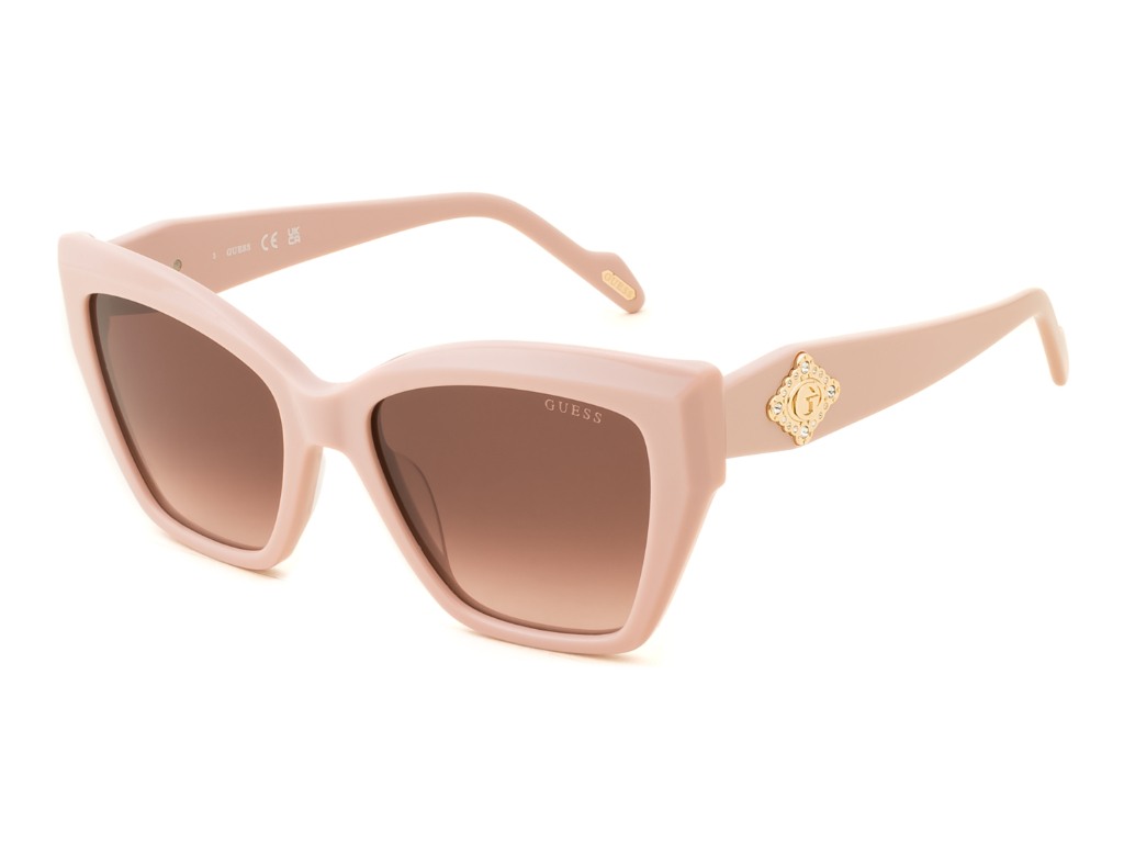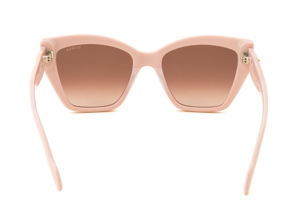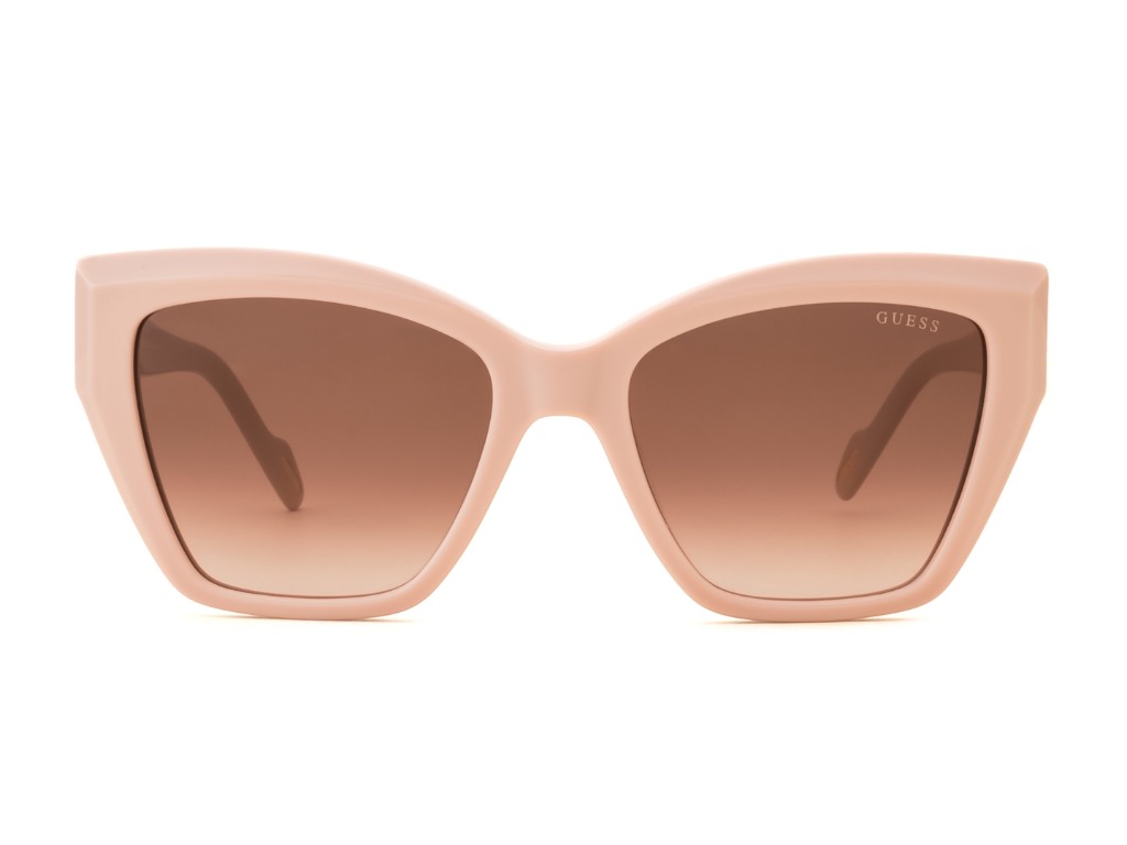 Discover the allure of Guess butterfly sunglasses, featuring a chic butterfly frame in shiny light pink acetate. These full rim sunglasses are designed for women who embrace style and sophistication. The pink gradient lenses add a touch of elegance, making them the perfect accessory for any fashion-forward look.