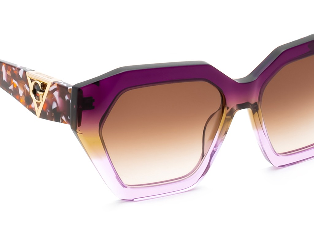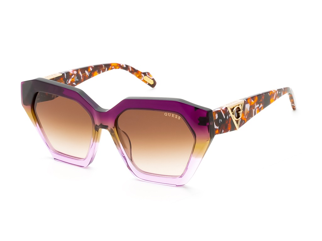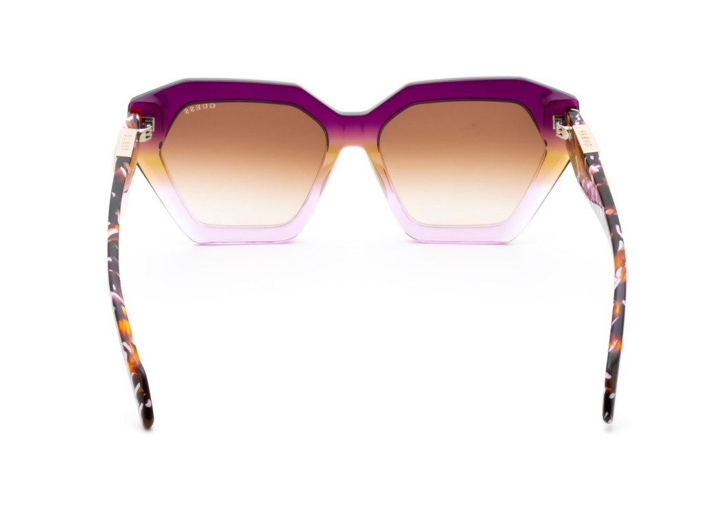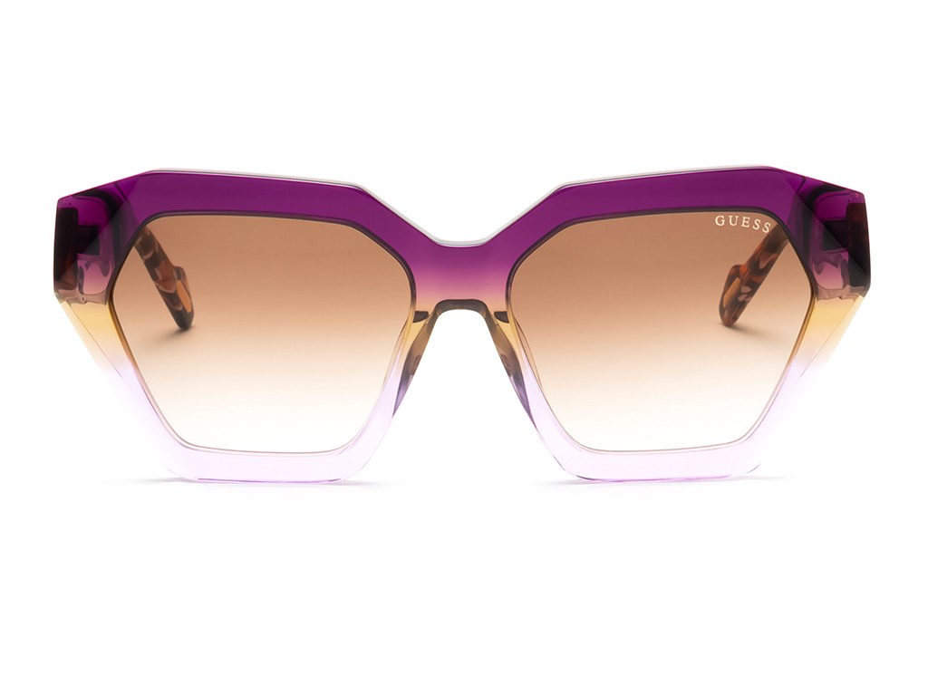 • Discover the chic allure of Guess hexagon sunglasses, featuring a trendy transparent acetate frame in a striking hexagon shape. The full rim design complements the stylish brown gradient lenses, offering a perfect blend of fashion and function. Designed for women who embrace modern elegance, these sunglasses are your go-to accessory for a sophisticated look.