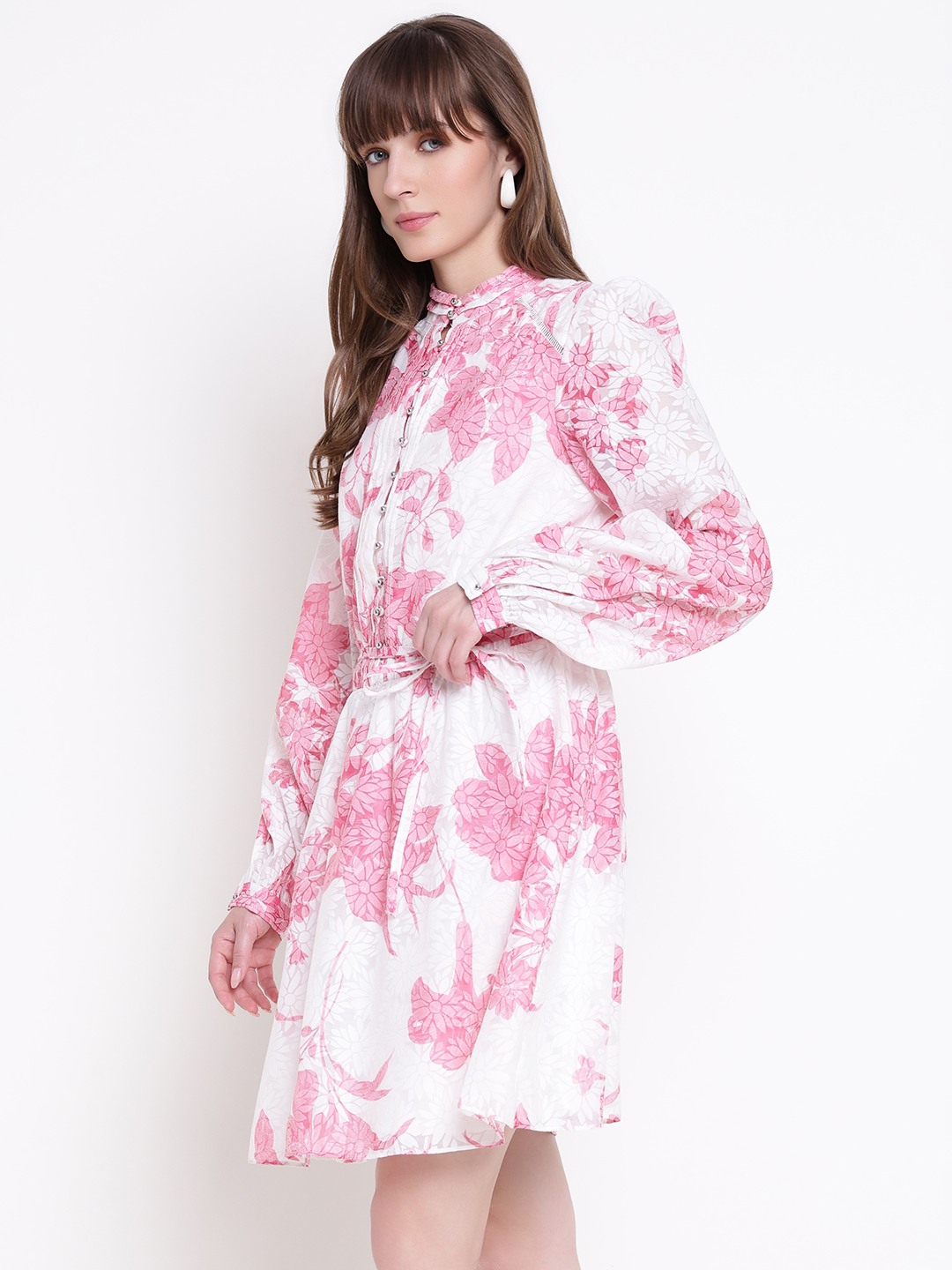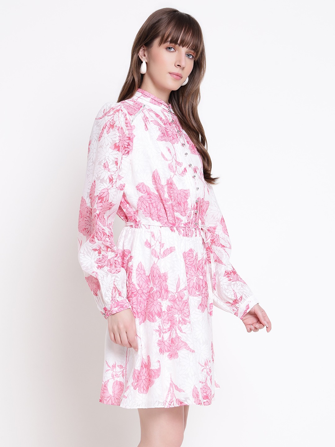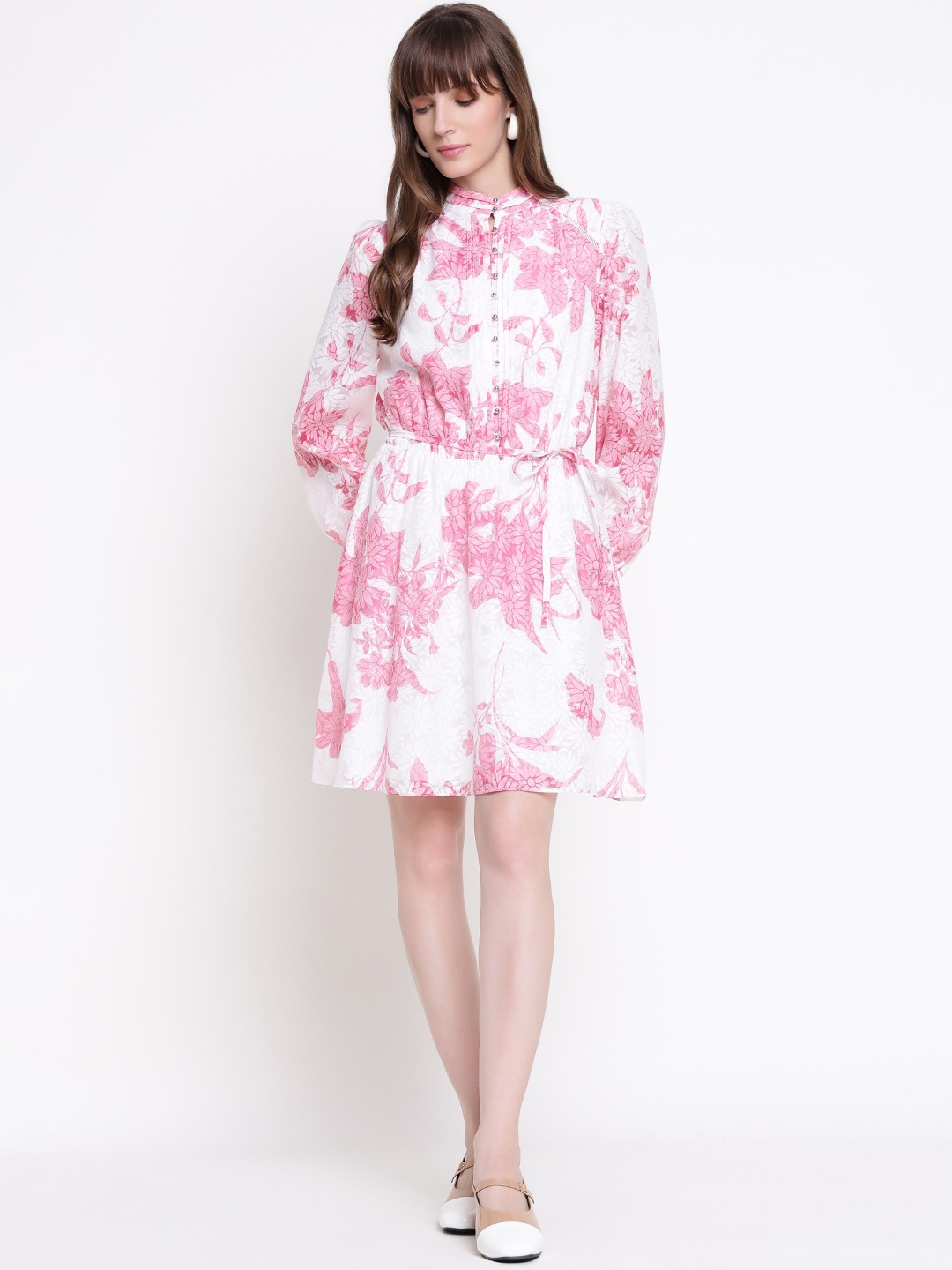 The adèlaide fit and flare dress in pink offers a stylish and comfortable choice for women. Crafted from polyester, it features a beautiful printed pattern that adds a touch of elegance. The full sleeves and band neck provide a modest yet fashionable look, perfect for various occasions. The dress is designed with a button closure for easy wear and a secure fit. Its regular fit ensures comfort throughout the day, making it a versatile addition to any wardrobe. Ideal for casual outings or semi-formal events.