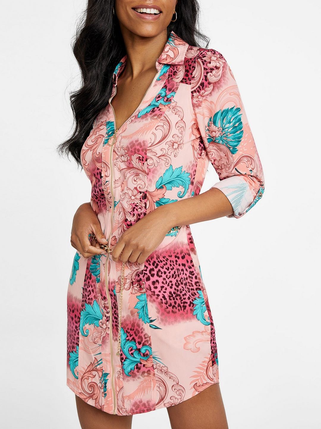Elevate your wardrobe with our stunning multicolor shirt dress, featuring an exquisite baroque print pattern that exudes elegance and sophistication. Crafted from luxurious viscose fabric, this dress offers a soft, breathable feel, perfect for any season. The long sleeves and classic collared design add a touch of timeless style, while the convenient zip closure ensures a flattering fit. Ideal for both casual outings and formal events, this versatile piece is a must-have for the modern woman seeking effortless chic.