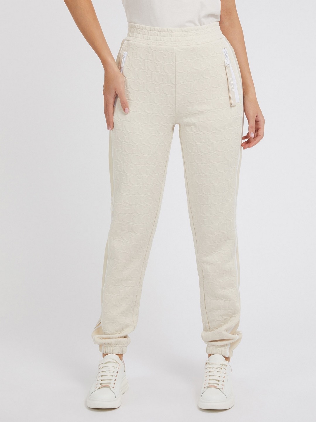 Guess Women's Beige Polycotton Solid Regular Fit Pants