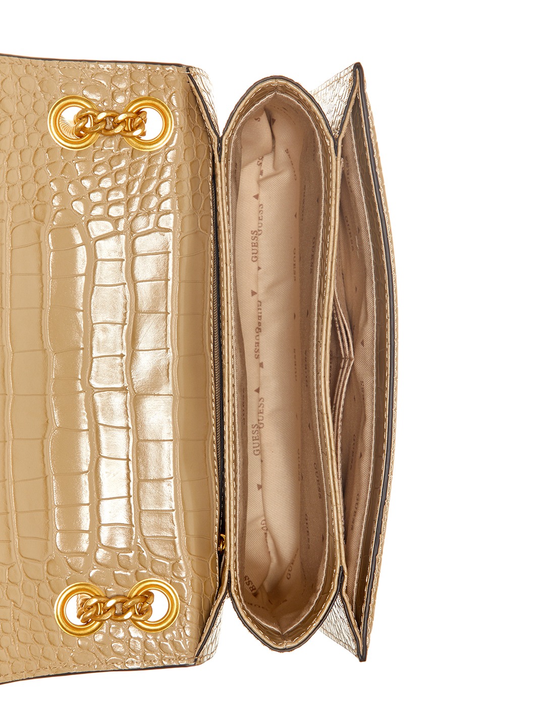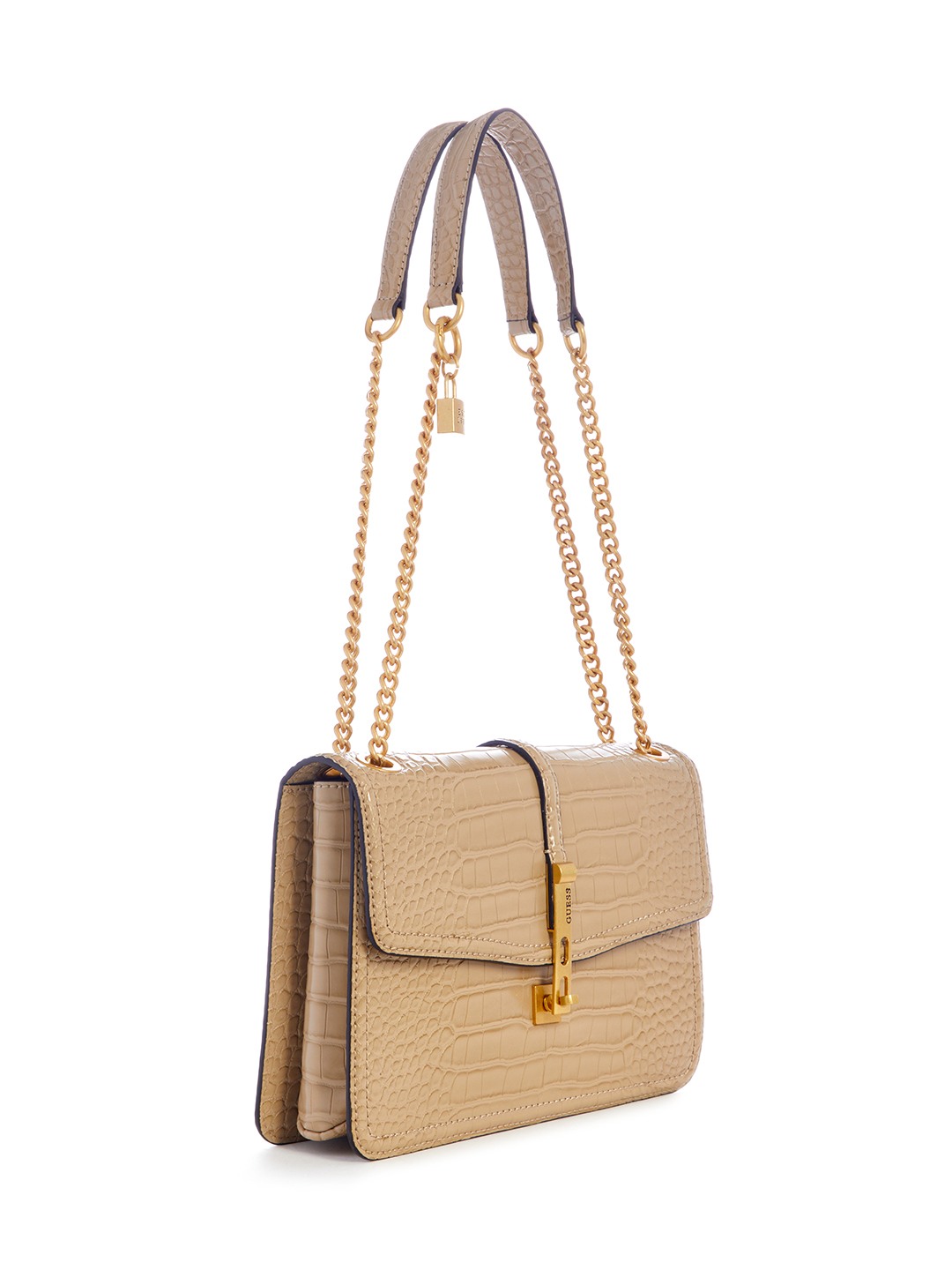 Guess Women Beige Textured Convertible Crossbody with Twist Lock Closure