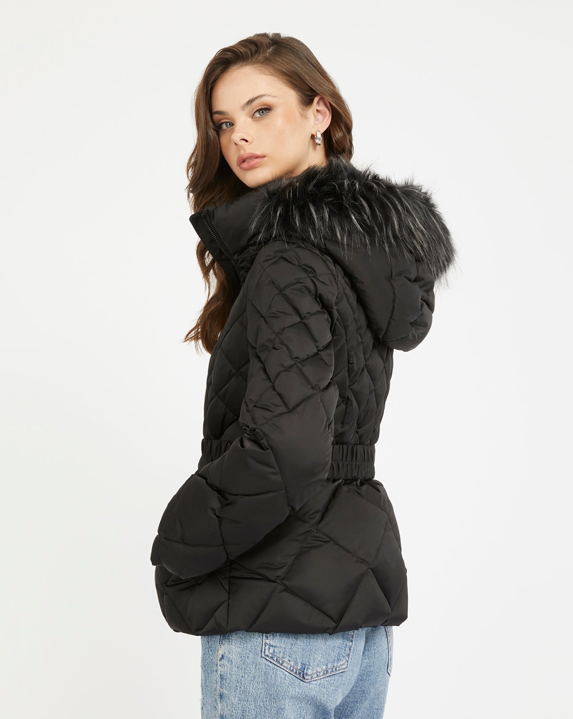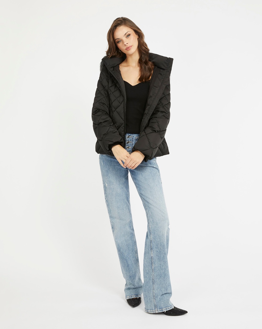 Black Solid Hooded Full Sleeves Quilted Jacket