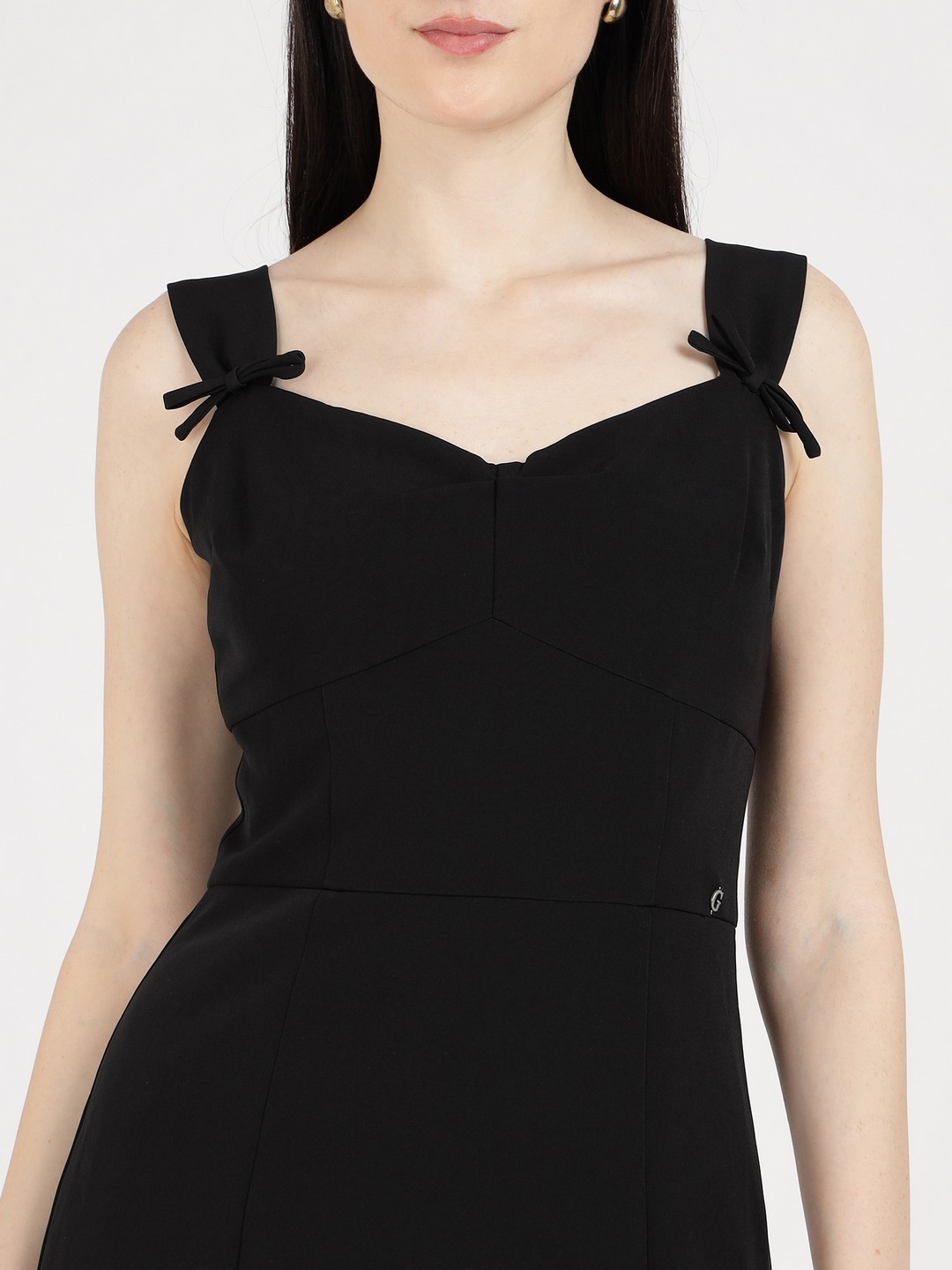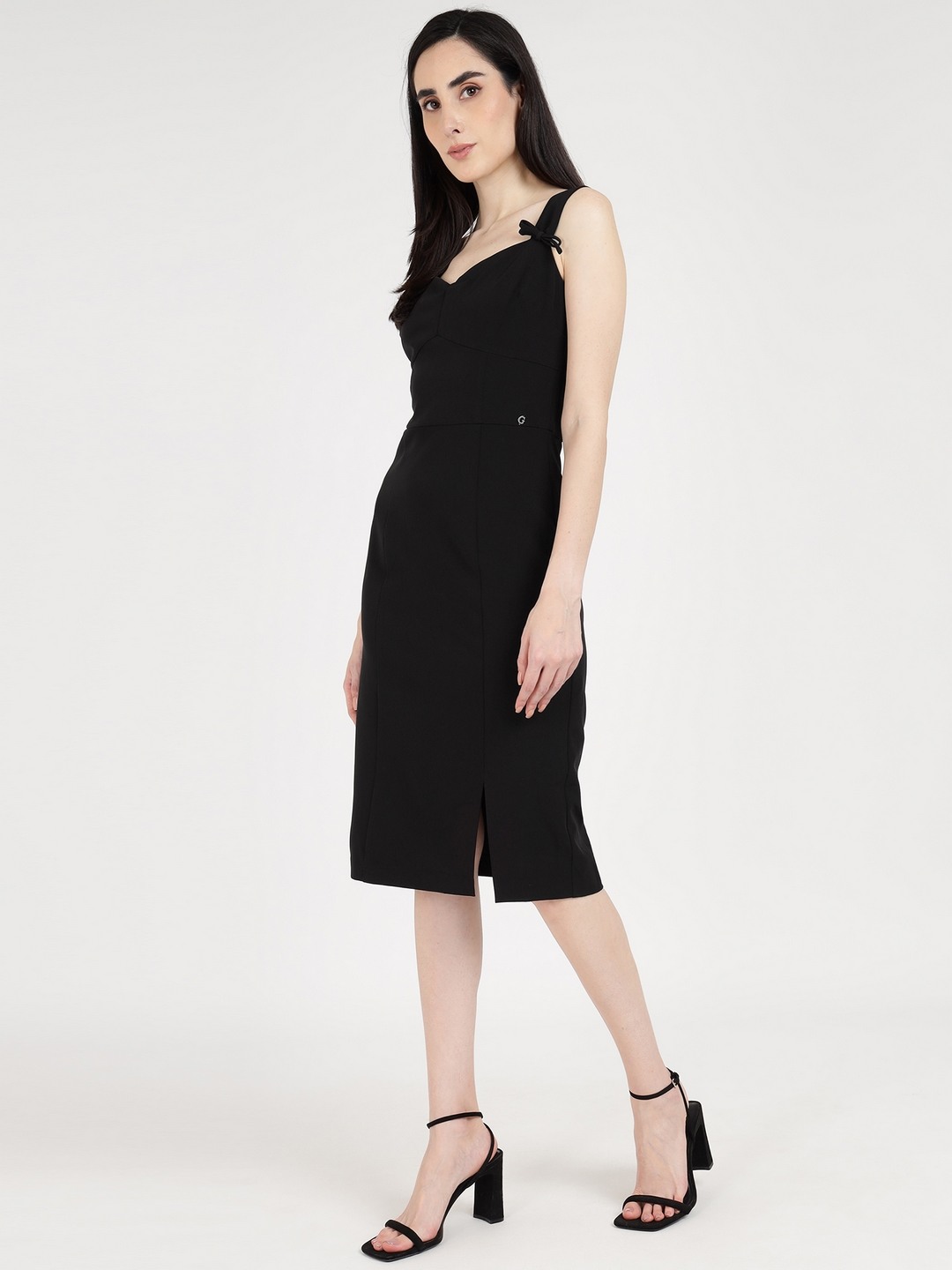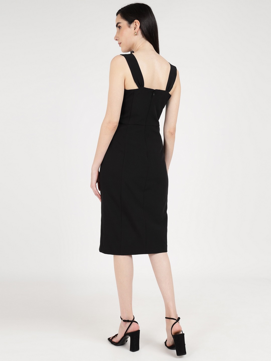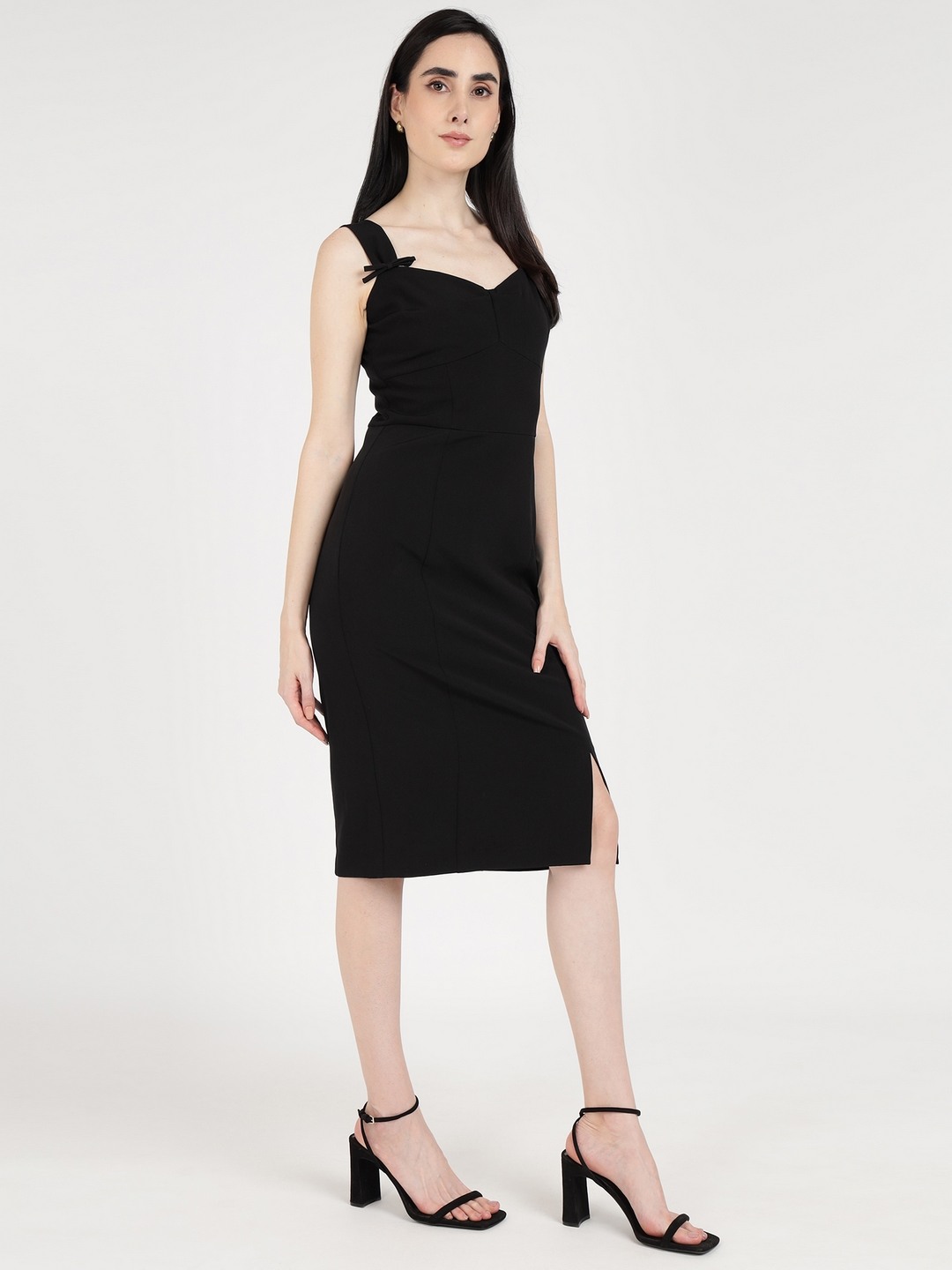 Black Solid Sweetheart Neck Sleeveless Bodycon Slit Dress