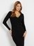 WoBlack Solid V-Neck Full Sleeves Bodycon Slit Dress