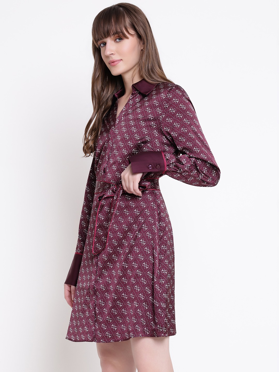 The blerta chemisier shirt dress offers a stylish and comfortable option for women. Featuring a regular fit in a rich maroon color, it showcases an attractive printed pattern that adds a touch of elegance. The full sleeves and spread collar provide a classic look, while the polyester fabric ensures durability and easy maintenance. The button closure enhances convenience and style, making it suitable for both casual and semi-formal occasions. Perfect for those who want a versatile and chic wardrobe addition.