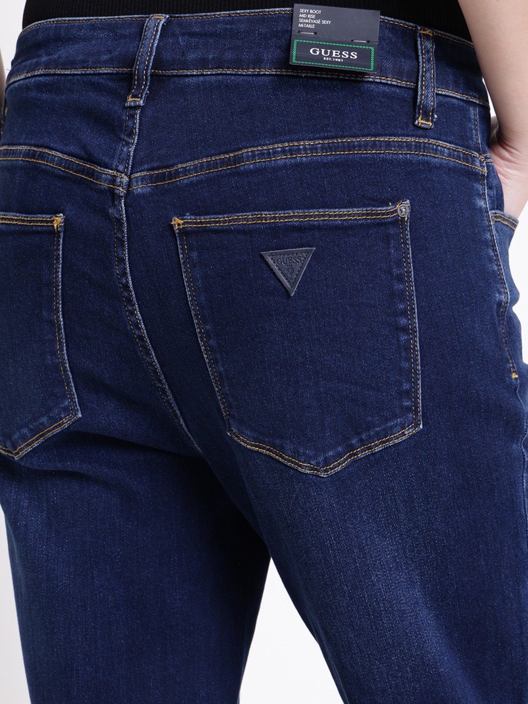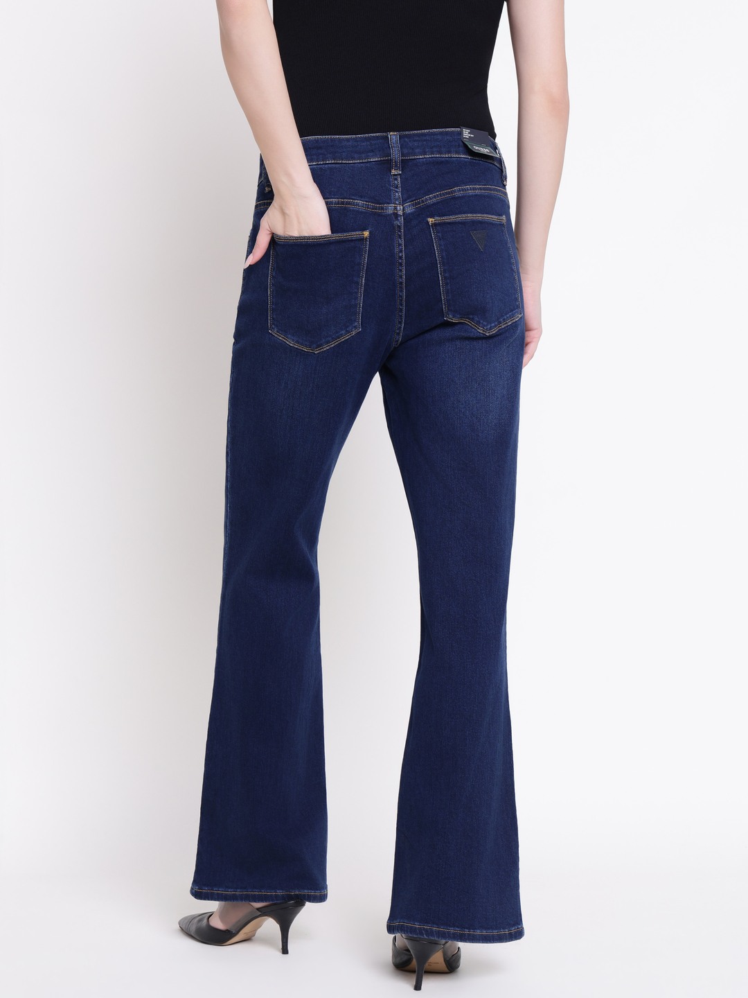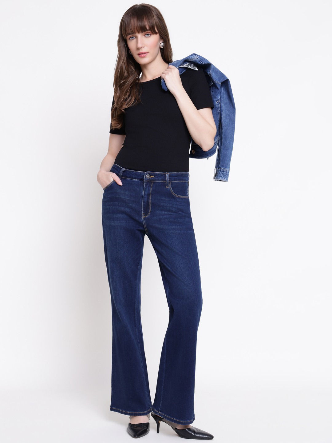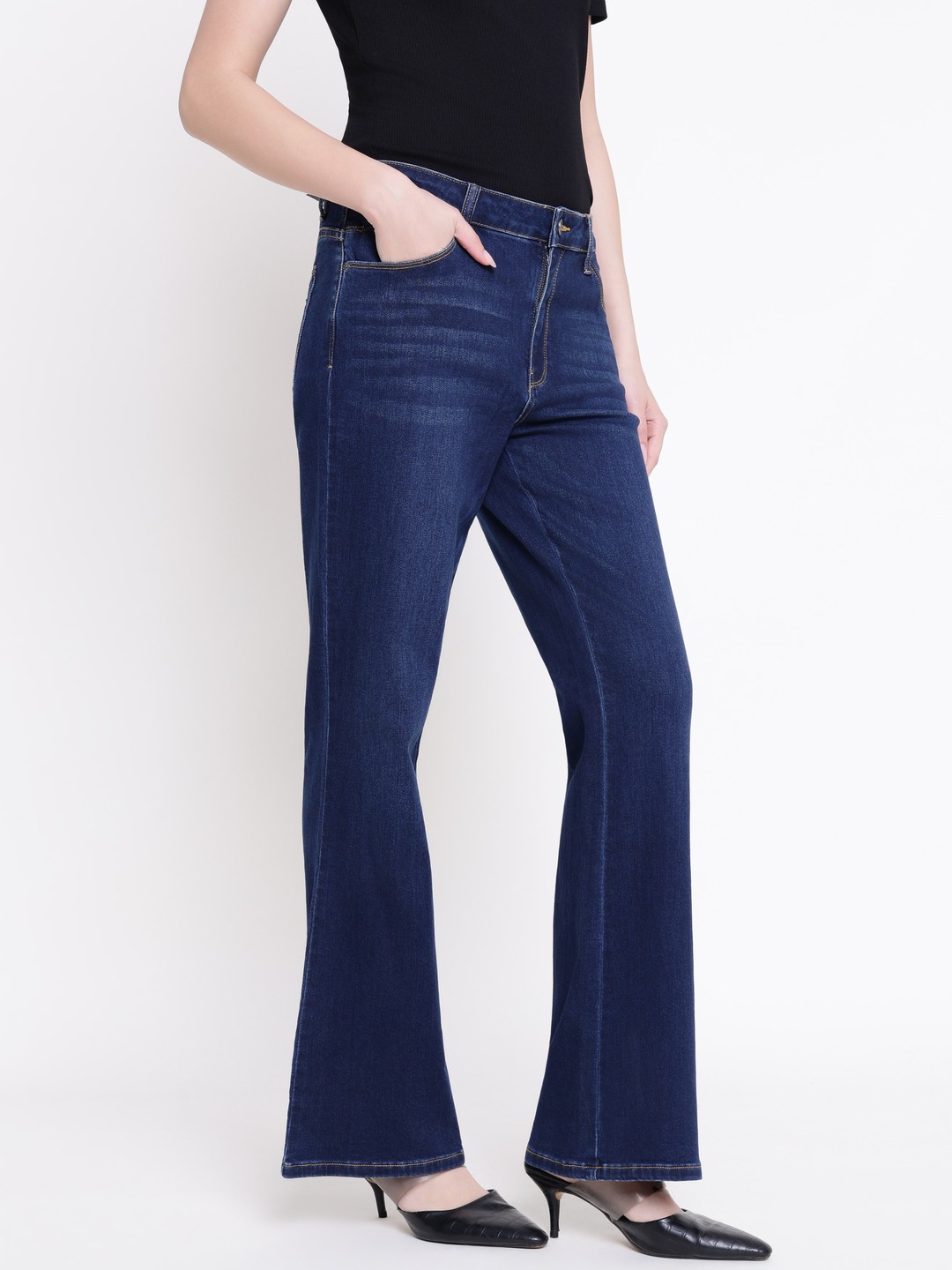 These sexy denim jeans in a classic blue color feature a flattering high rise and a comfortable bootcut fit that enhances your silhouette. Made from soft cotton fabric, they offer durability and all-day comfort. The solid pattern adds a timeless touch, while the button closure ensures a secure fit. Perfect for casual outings or dressing up for a night out, these jeans combine style and comfort effortlessly. Elevate your wardrobe with this versatile piece that complements any look and makes you feel confident.