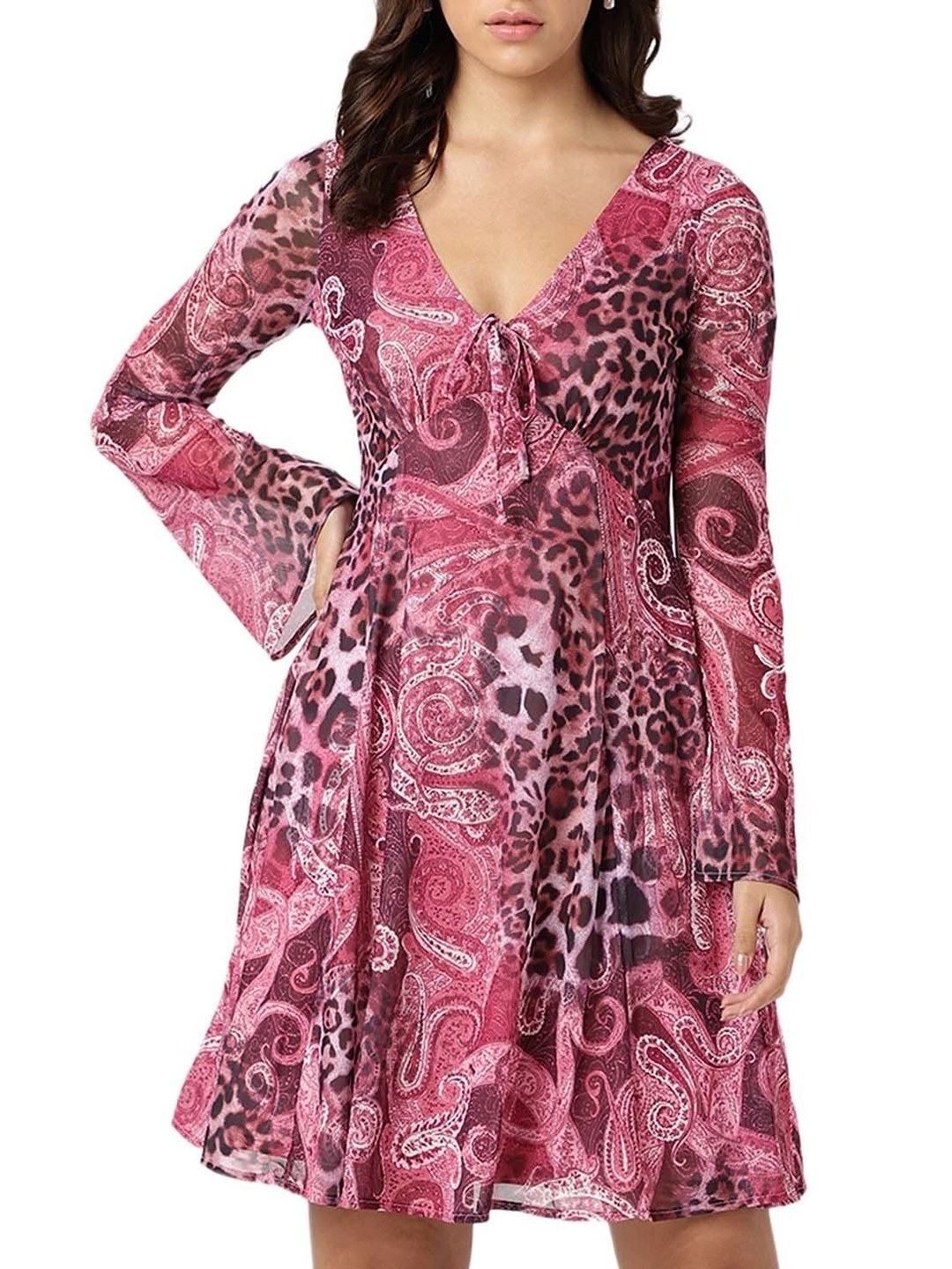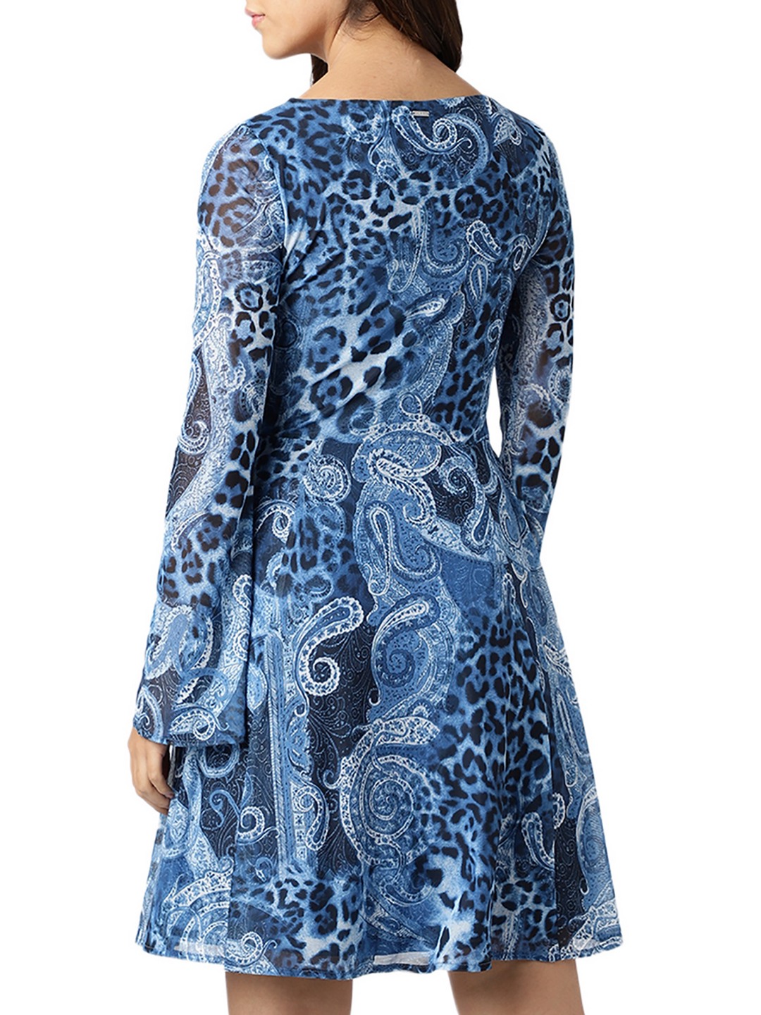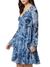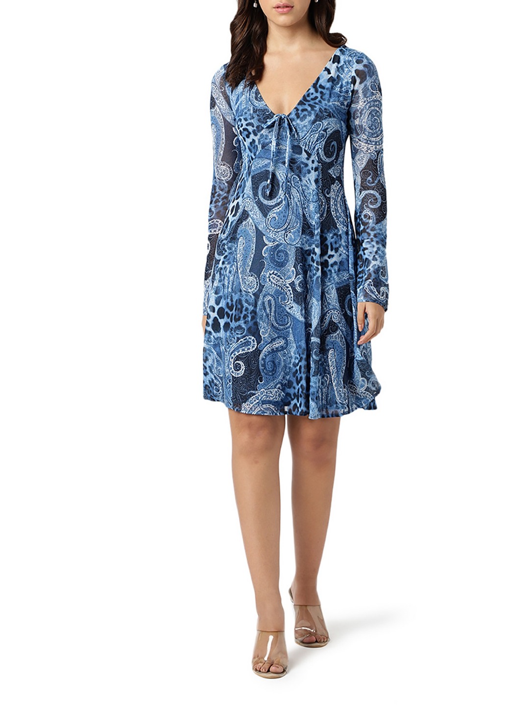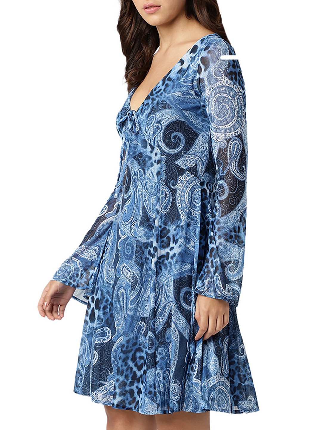Guess Women Blue Printed V-Neck Full Sleeves A-Line Dress