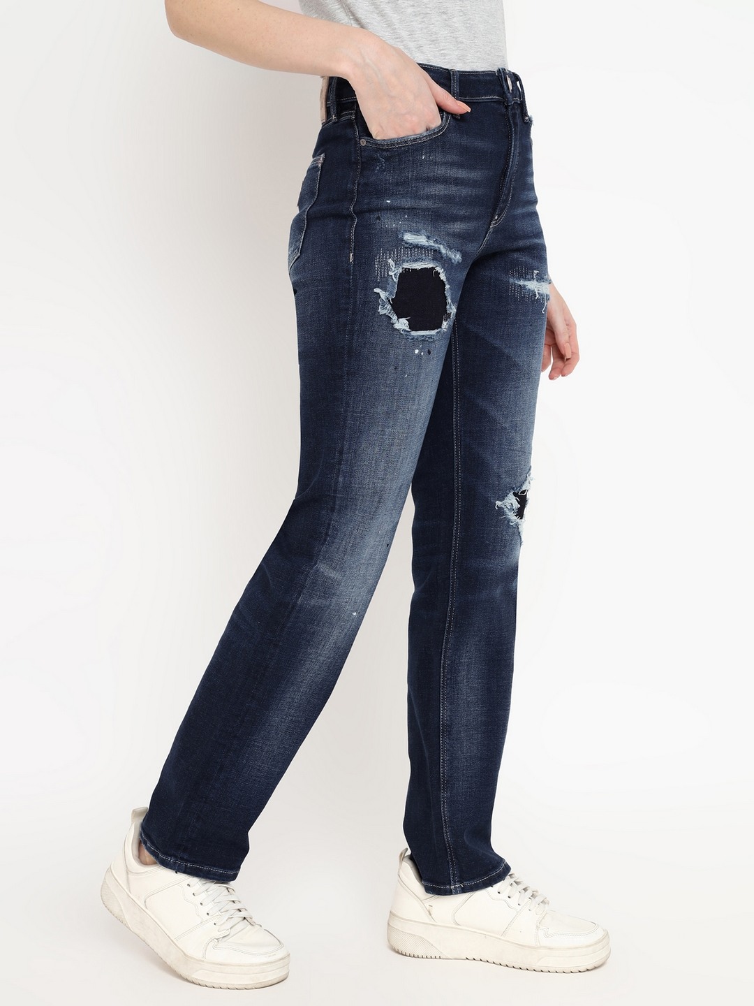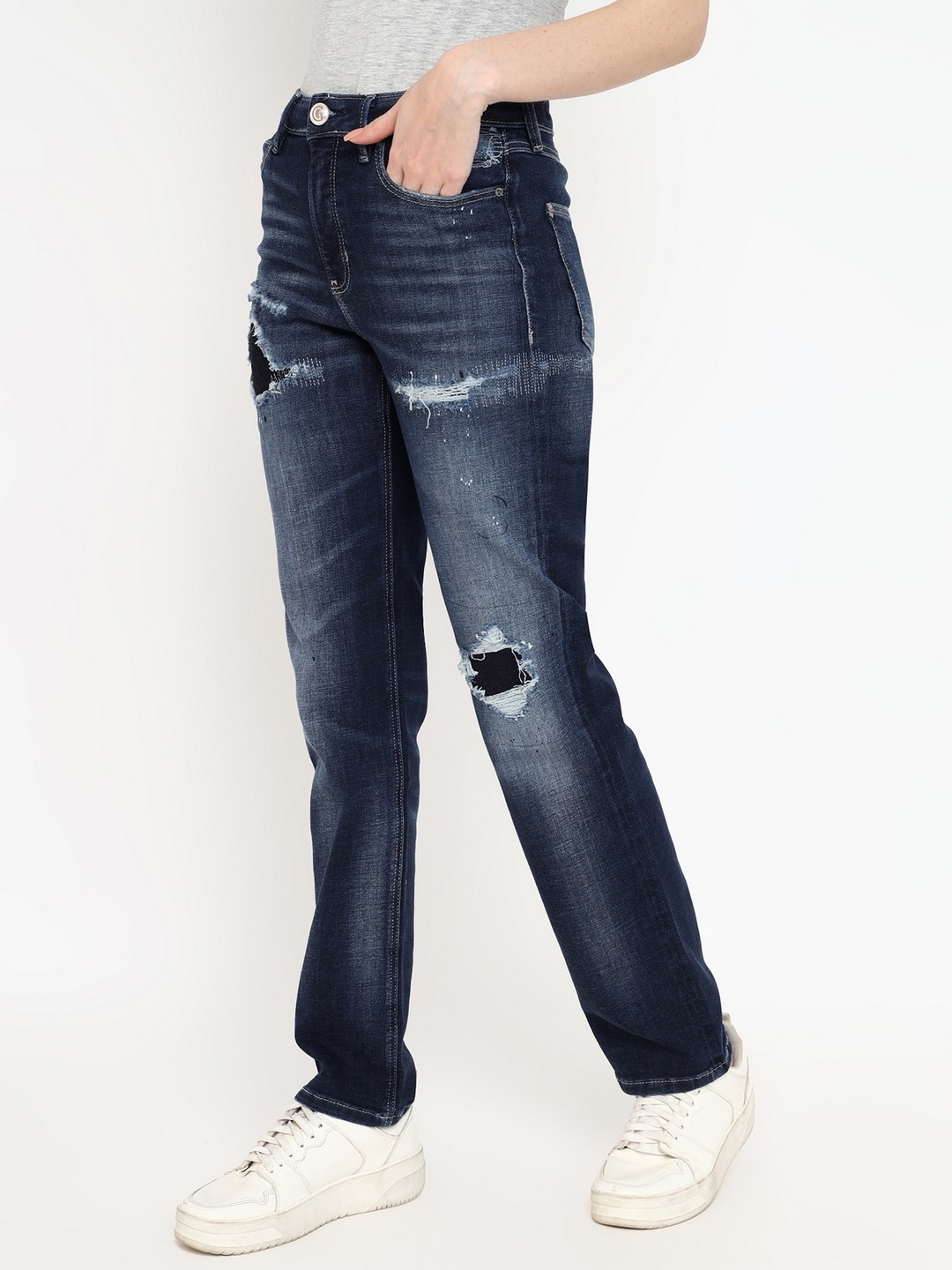 Blue Solid High-Rise Full Length Jeans