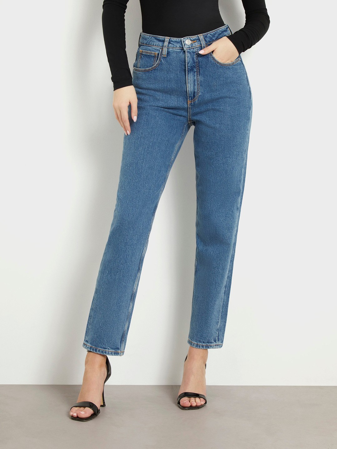 Guess Women Blue Solid High-Rise Regular Fit Mom Jeans