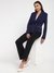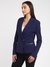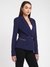 Blue Solid Notched Lapel Full Sleeves Double Breasted Blazer