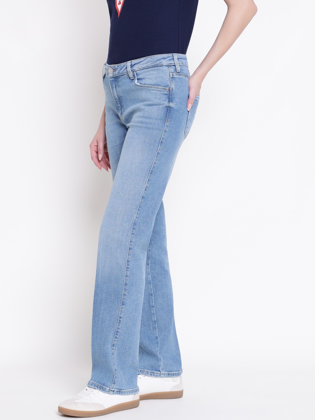 Discover the timeless style of bluebelle denim jeans in a classic blue shade. Designed for women, these regular fit jeans offer a comfortable high-rise fit that flatters every body type. Crafted from soft, durable cotton fabric, they provide all-day comfort and breathability. The solid pattern adds versatility, making them perfect for casual outings or dressing up for a night out. Featuring a convenient button closure, these jeans combine style and practicality effortlessly. Elevate your wardrobe with this essential denim piece.