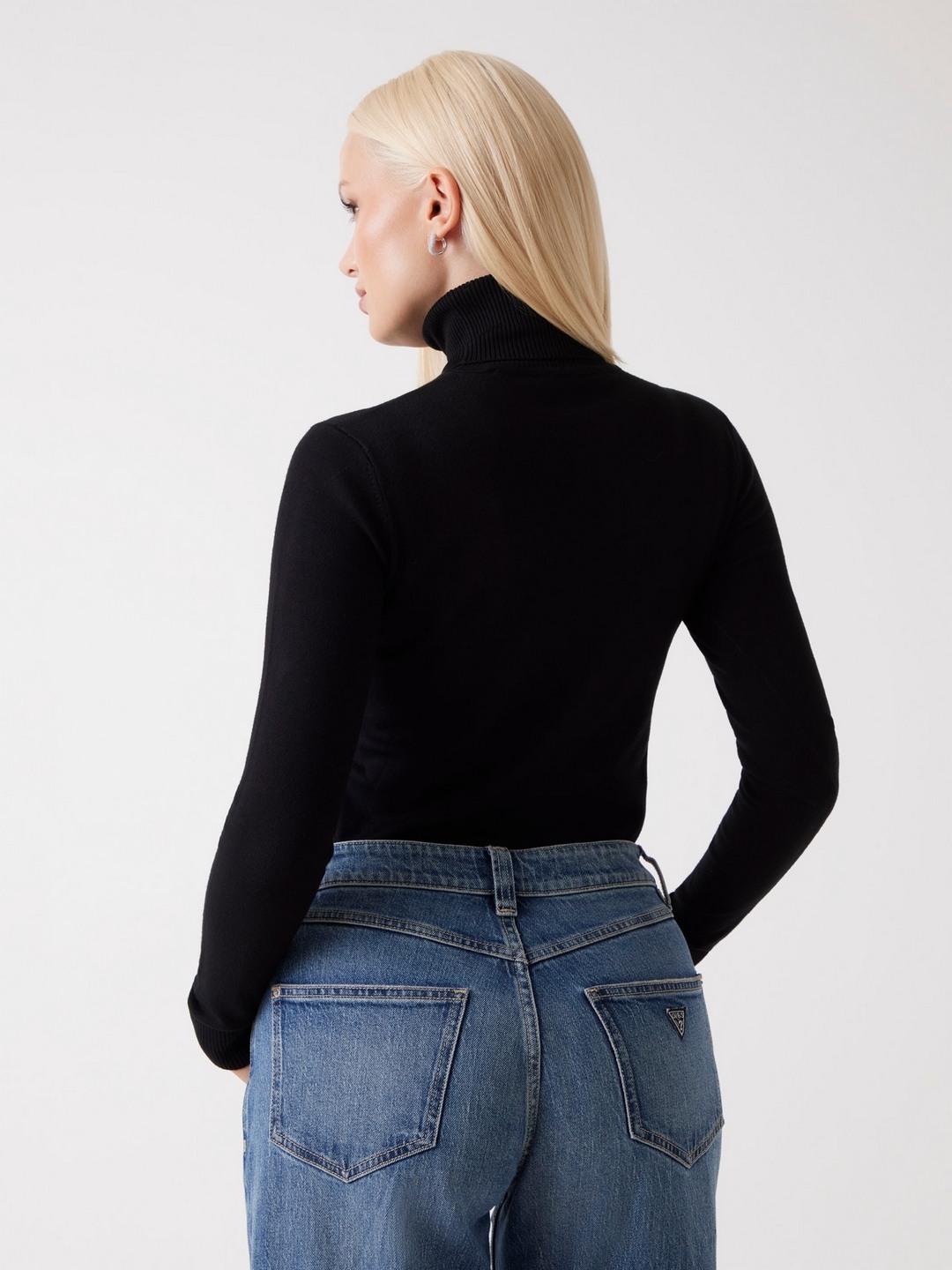 Elevate your wardrobe with our chic black pullover, designed for the modern woman who values both style and comfort. This regular fit pullover features an elegant brand logo pattern, adding a touch of sophistication to your ensemble. Crafted from a luxurious viscose blend fabric, it offers a soft, breathable feel perfect for any season. The long sleeves and high neck provide a sleek silhouette, while the convenient pull-on closure ensures effortless wear. Ideal for both casual outings and more formal occasions, this pullover is a versatile addition to any closet.