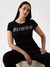Elevate your casual wardrobe with our chic black T-shirt, designed for the modern woman who values both style and comfort. This regular-fit tee features a subtle yet striking brand logo pattern, adding a touch of sophistication to your everyday look. Crafted from a premium cotton blend fabric, it ensures breathability and softness, perfect for all-day wear. The short sleeves and classic round neck offer timeless appeal, while the convenient pull-on closure makes dressing effortless. Ideal for pairing with jeans or skirts, this versatile piece is a must-have staple.