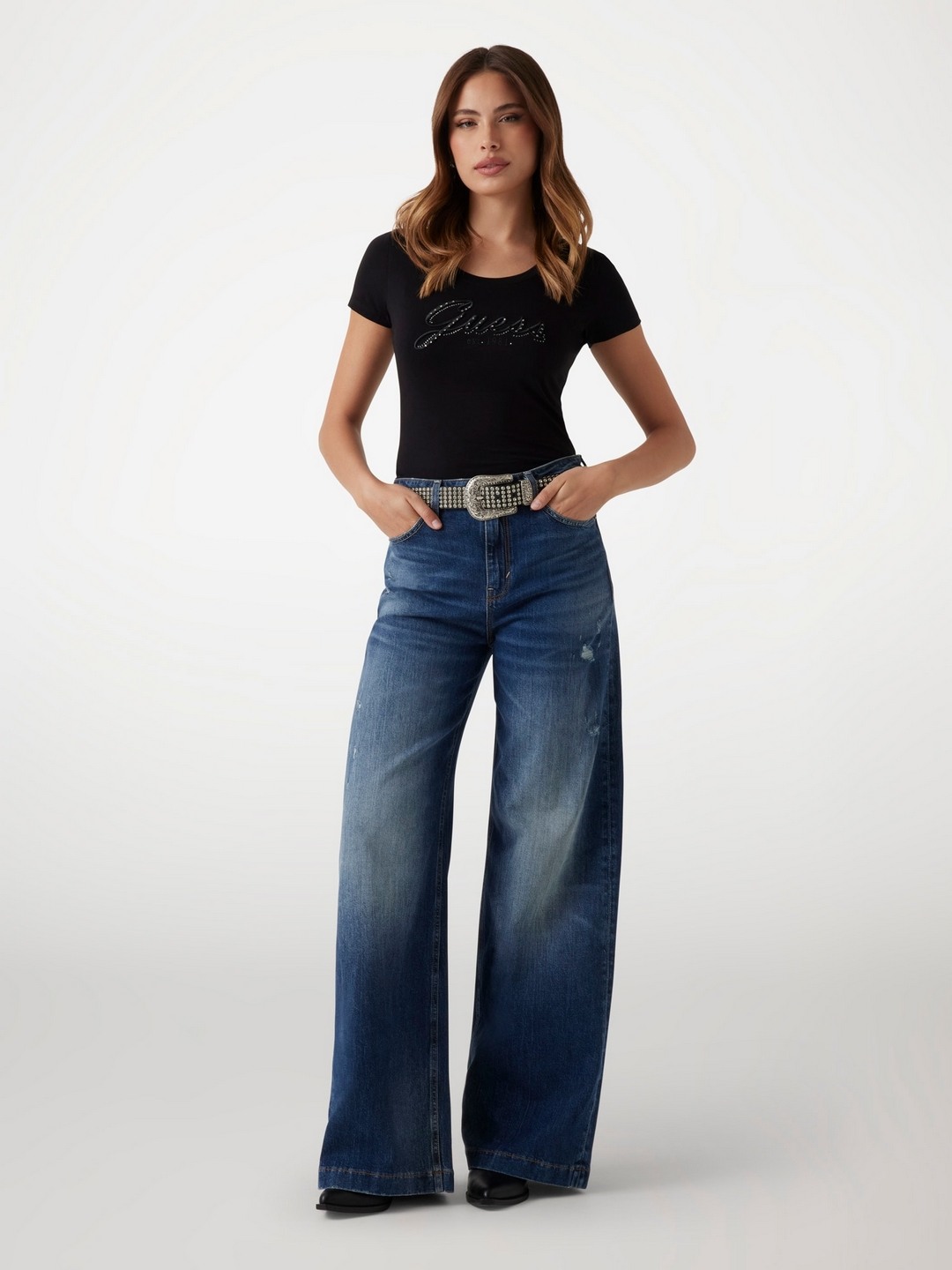 Guess Women Brand Logo Round Neck Short Sleeves T-Shirt