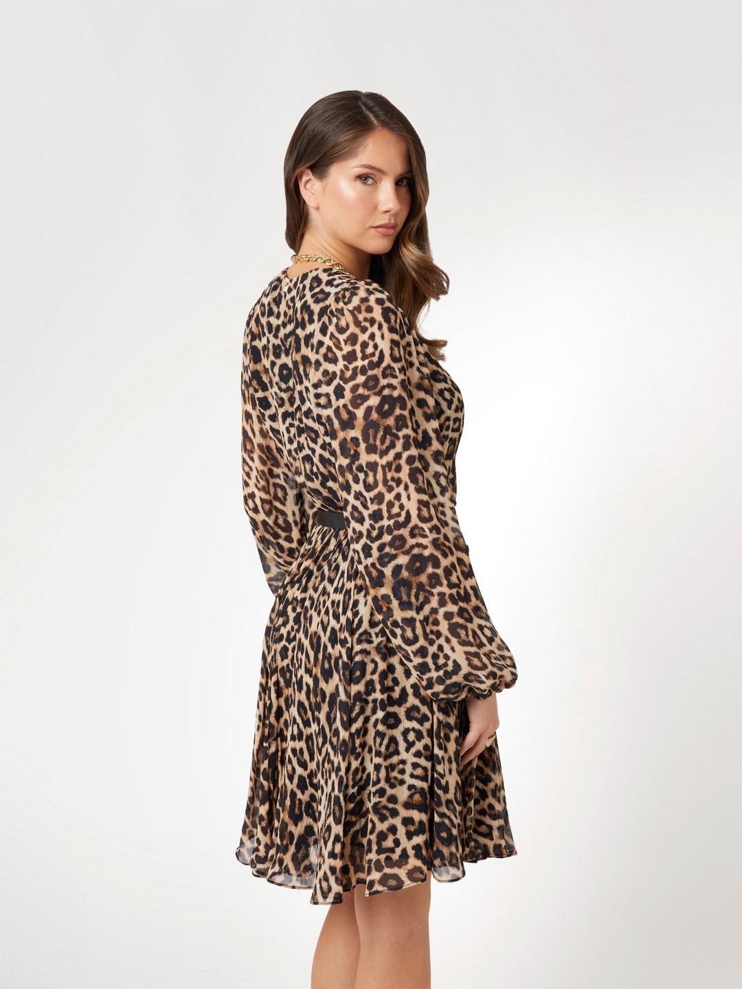 Unleash your wild side with our stunning Fit & Flare Dress in a captivating brown animal print. Crafted from soft, breathable viscose, this dress offers a regular fit that flatters every silhouette. The elegant V-neckline and long sleeves add a touch of sophistication, making it perfect for both day and night. With its easy pull-on closure, getting ready is a breeze. Whether you're heading to the office or a night out, this dress promises comfort and style, ensuring you stand out effortlessly.