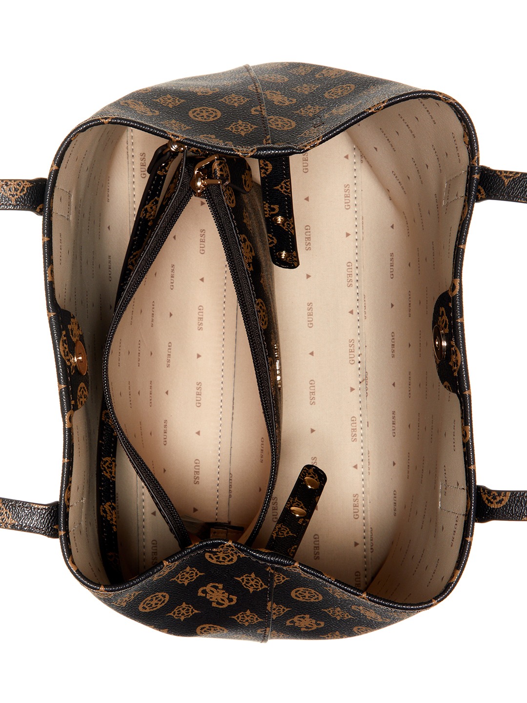 Guess Women Brown Printed Tote Bag with Snap Button Closure