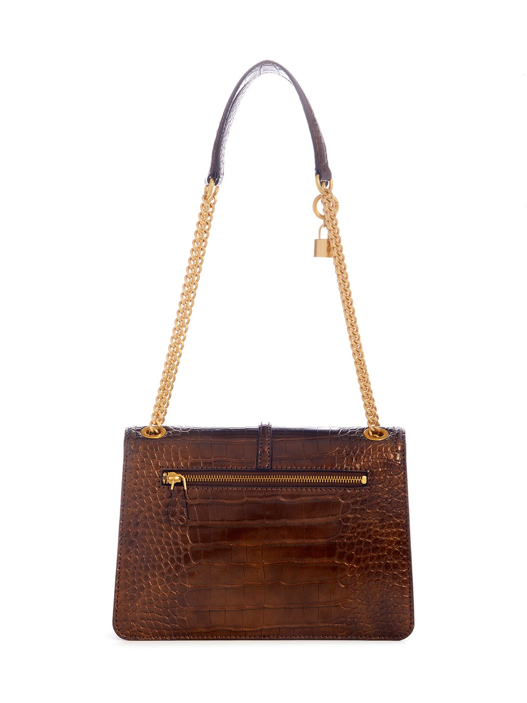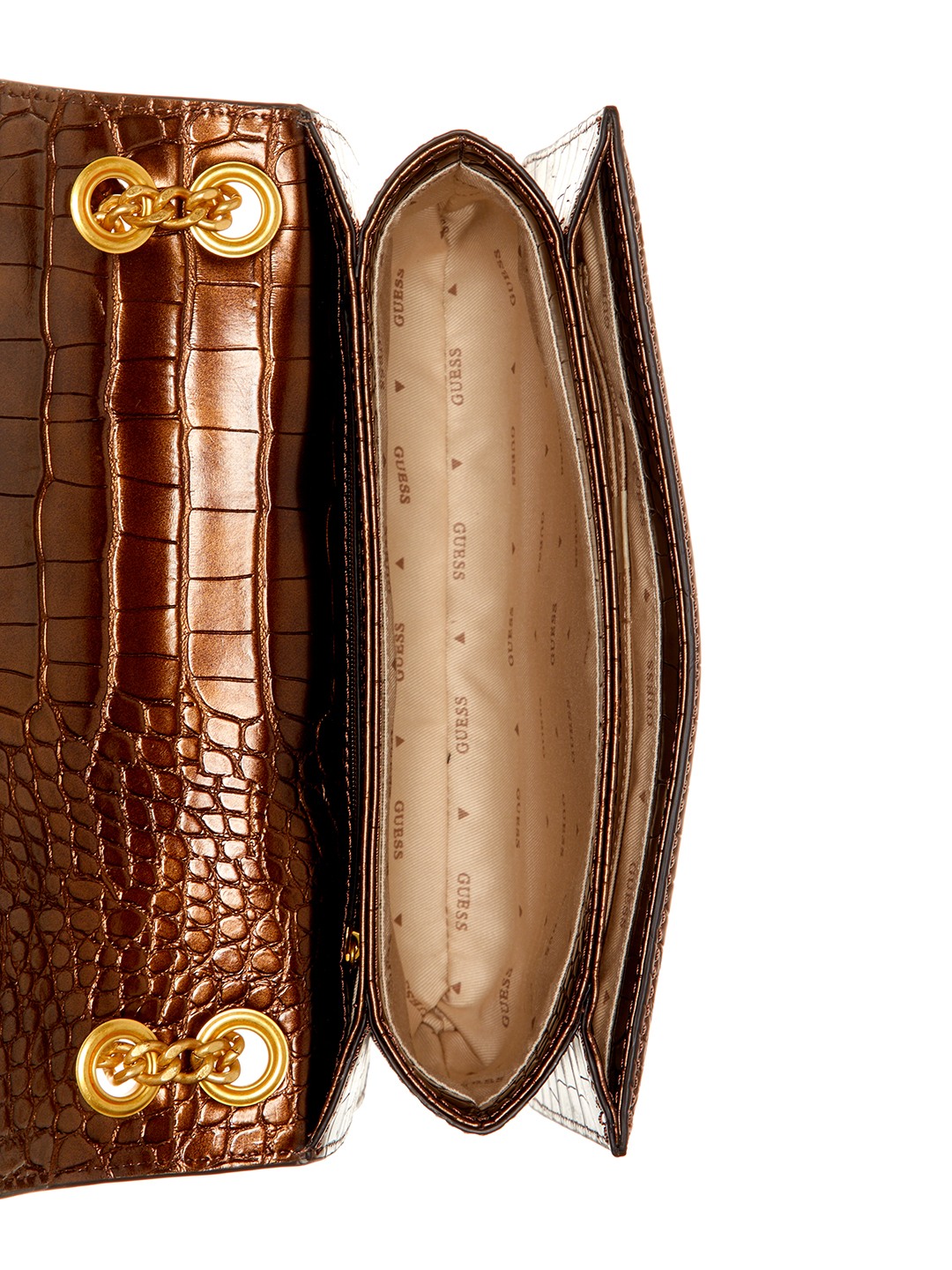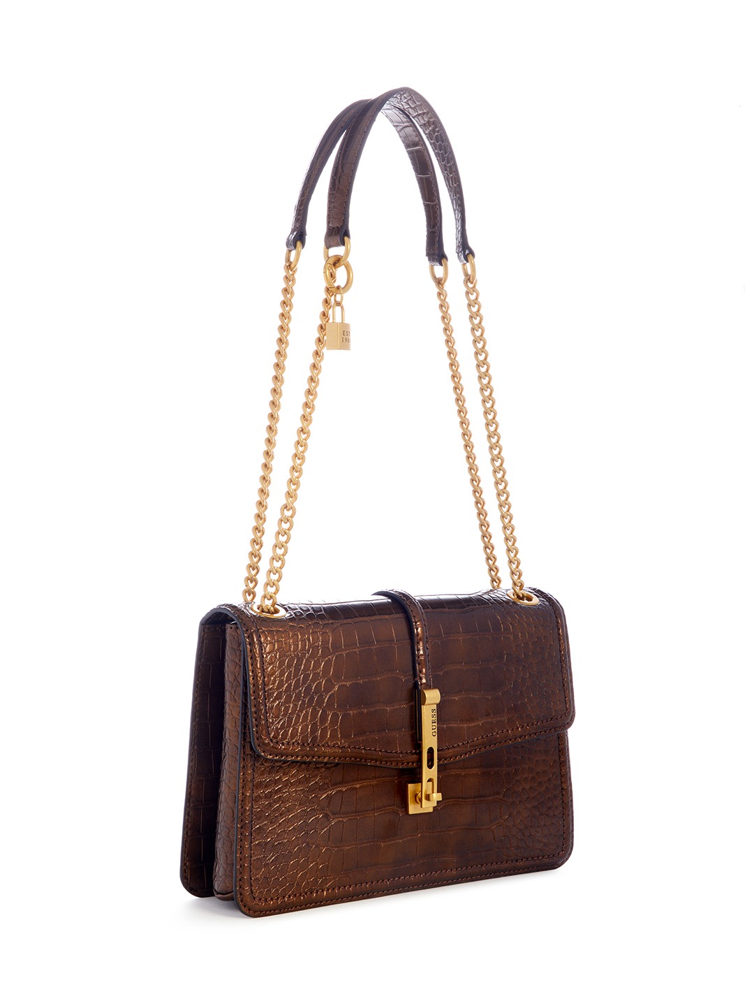 Guess Women Brown Textured Convertible Crossbody with Twist Lock Closure
